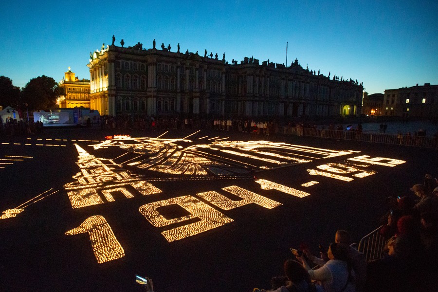 6月22日凌晨,人們在俄羅斯圣彼得堡冬宮廣場點燃蠟燭,紀(jì)念衛(wèi)國戰(zhàn)爭爆發(fā)81周年。