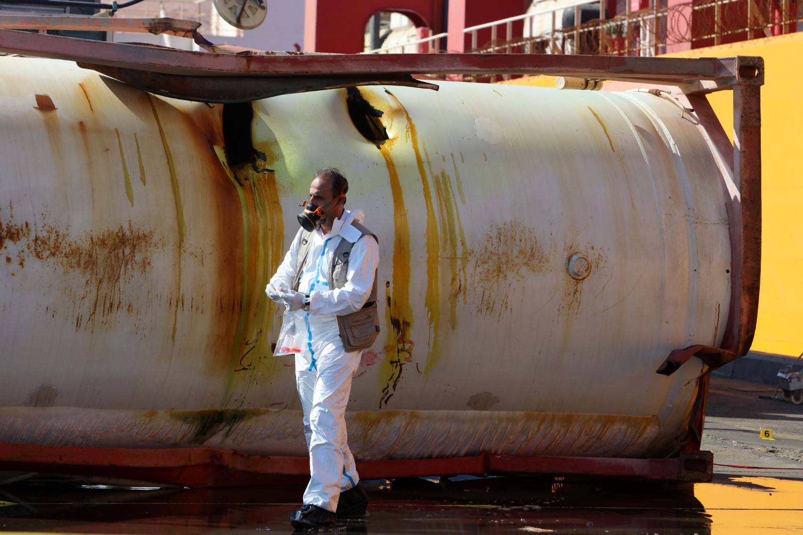 6月28日,工作人員在約旦亞喀巴的事故現(xiàn)場(chǎng)調(diào)查。