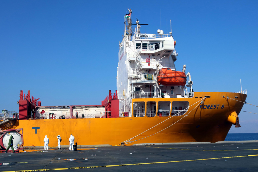 6月28日,工作人員在約旦亞喀巴的事故現場調查。