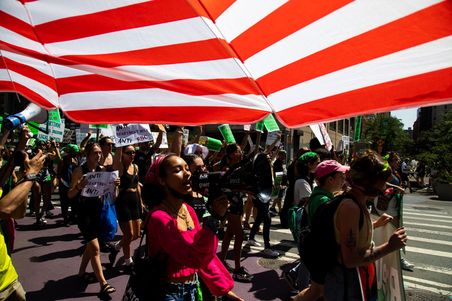 7月4日,墮胎權(quán)支持者在美國(guó)紐約舉行示威游行。