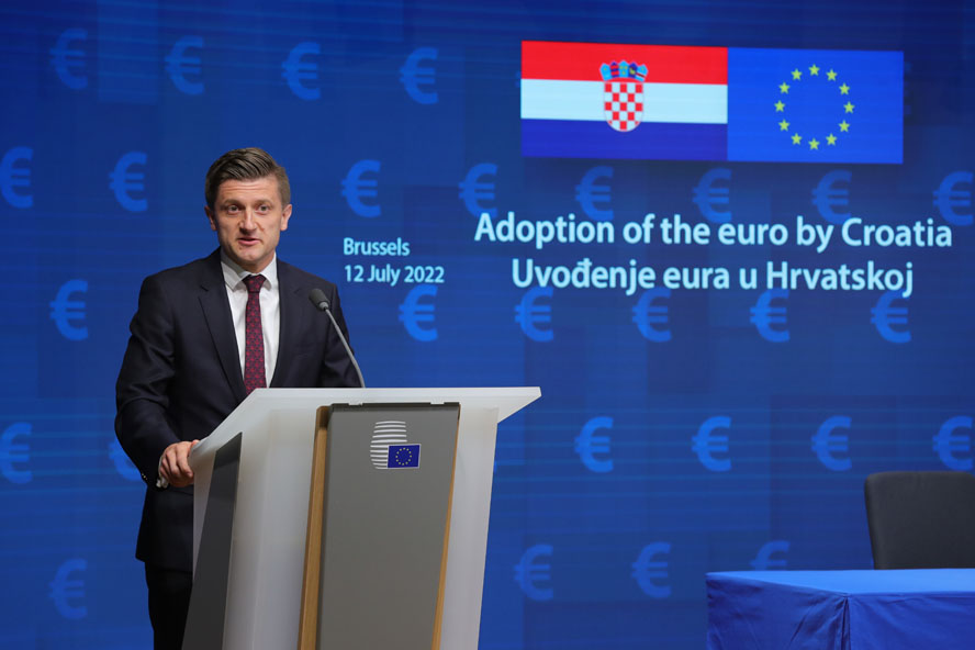 7月12日,克羅地亞副總理兼財(cái)政部長(zhǎng)茲德拉夫科·馬里奇在比利時(shí)布魯塞爾出席克羅地亞加入歐元區(qū)法律文件簽署儀式。