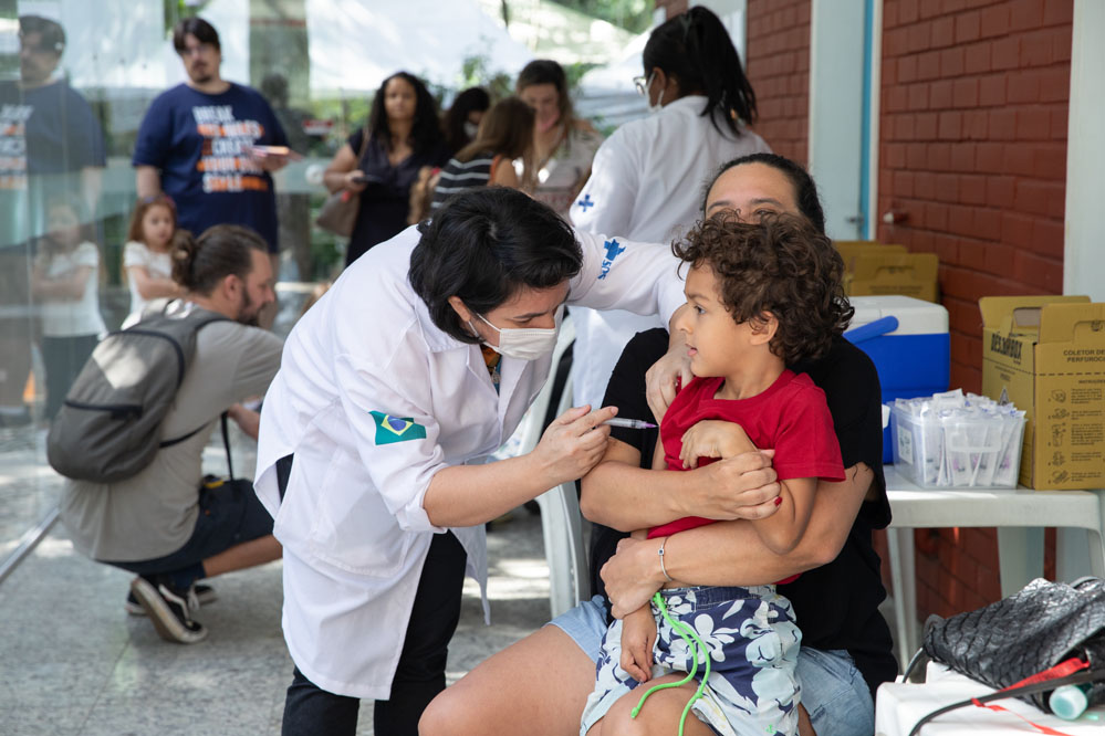 7月16日,在巴西里約熱內(nèi)盧,一名兒童接種克爾來福新冠疫苗。