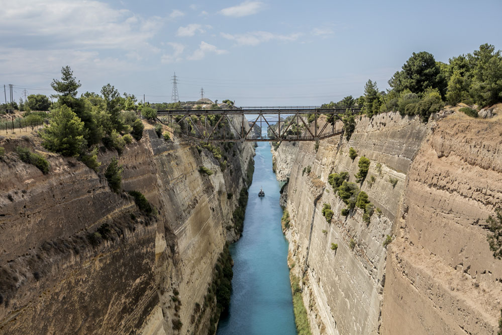7月11日,船只在希臘科林斯運(yùn)河上航行。