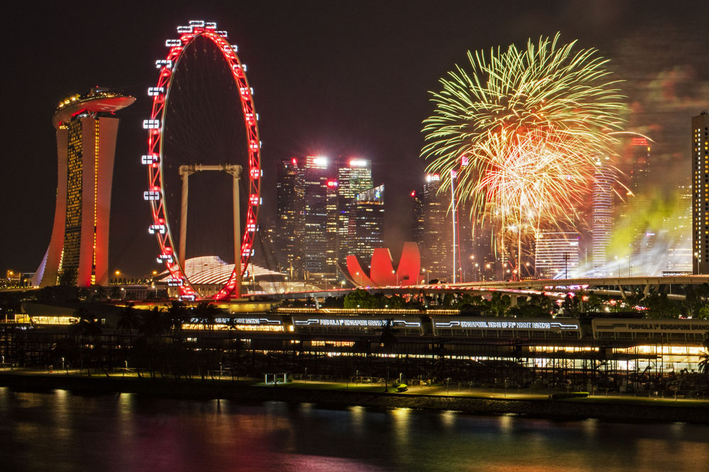 8月9日,新加坡濱海灣舉行的國慶慶典上煙花綻放。