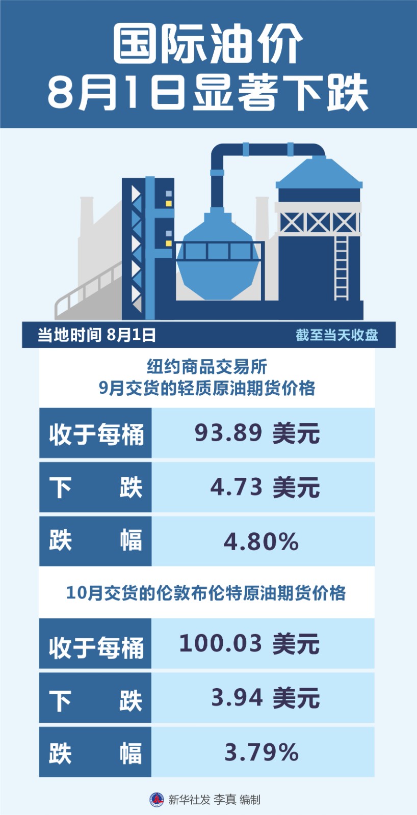 (圖表)國(guó)際油價(jià)8月1日顯著下跌