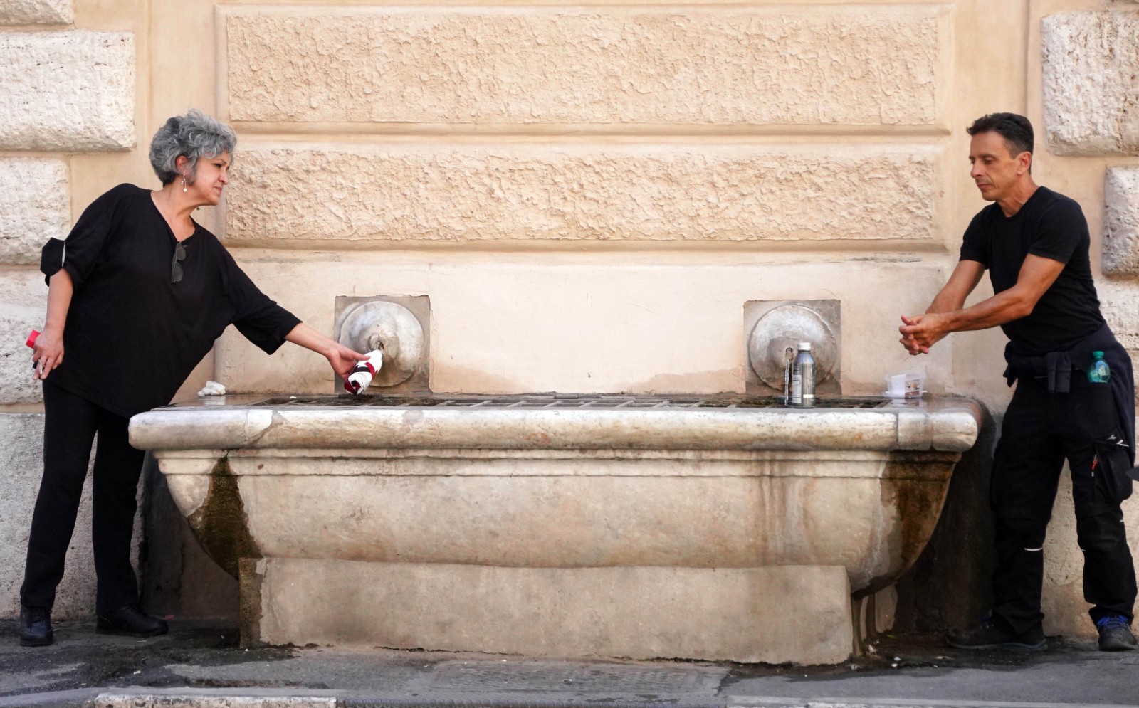 8月2日,人們在意大利羅馬街頭接水。