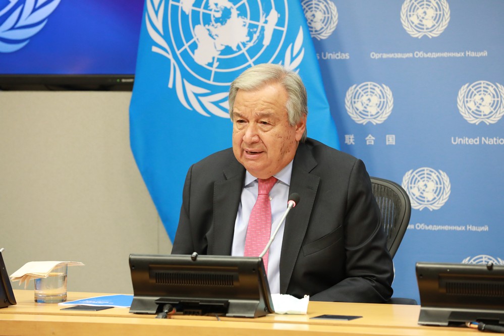 8月3日,在位于紐約的聯(lián)合國(guó)總部,聯(lián)合國(guó)秘書長(zhǎng)古特雷斯回答記者提問(wèn)。
