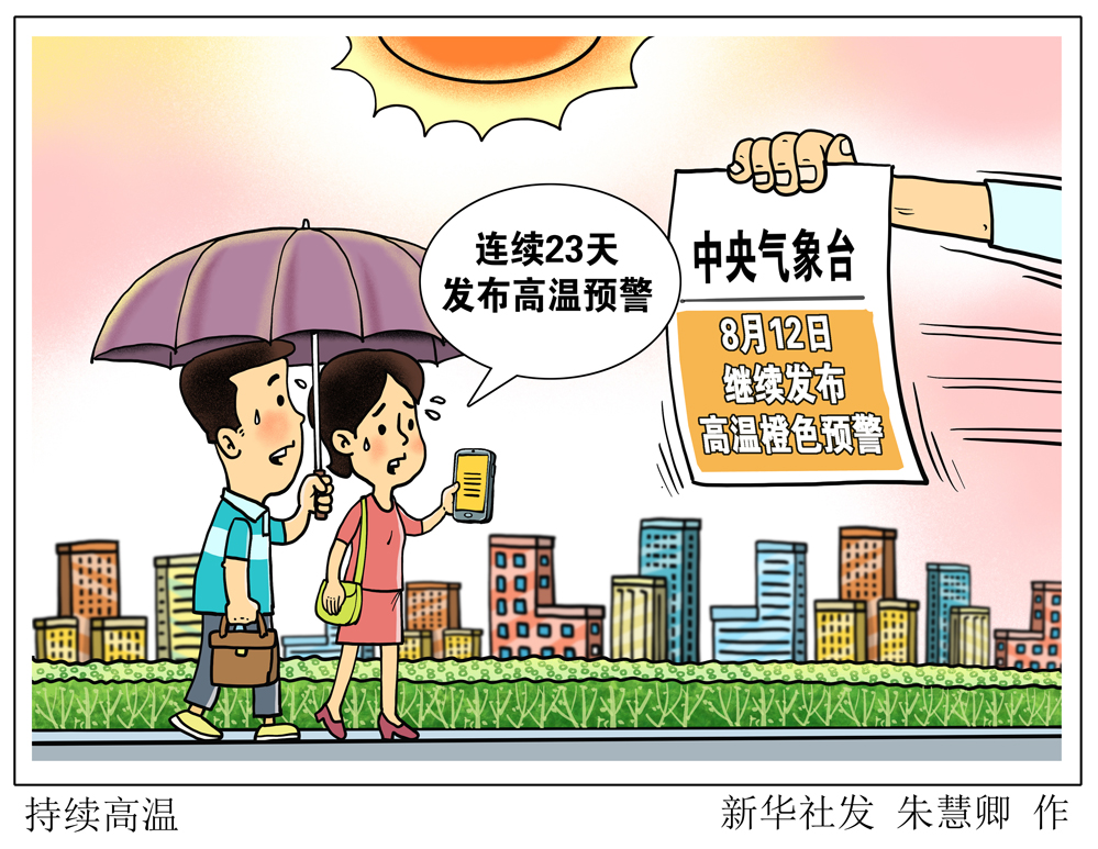 中央氣象臺8月12日繼續(xù)發(fā)布高溫橙色預(yù)警,至此,中央氣象臺已連續(xù)23天發(fā)布高溫預(yù)警。