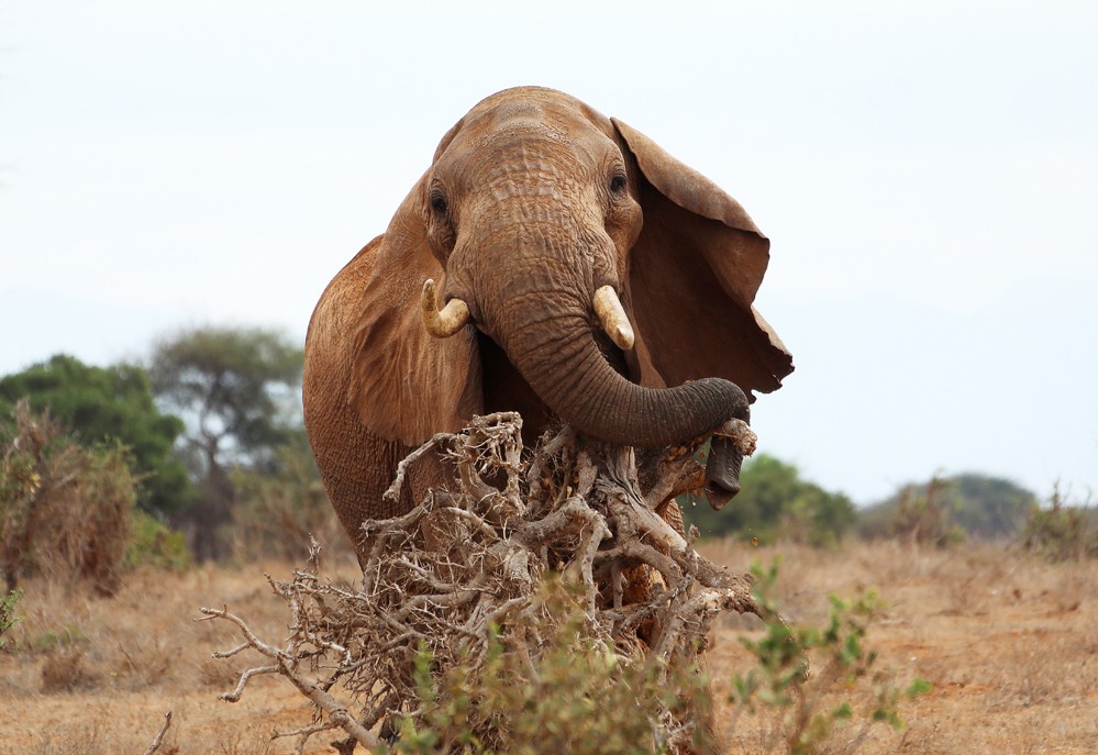 這是7月28日在肯尼亞察沃國(guó)家公園拍攝的大象。