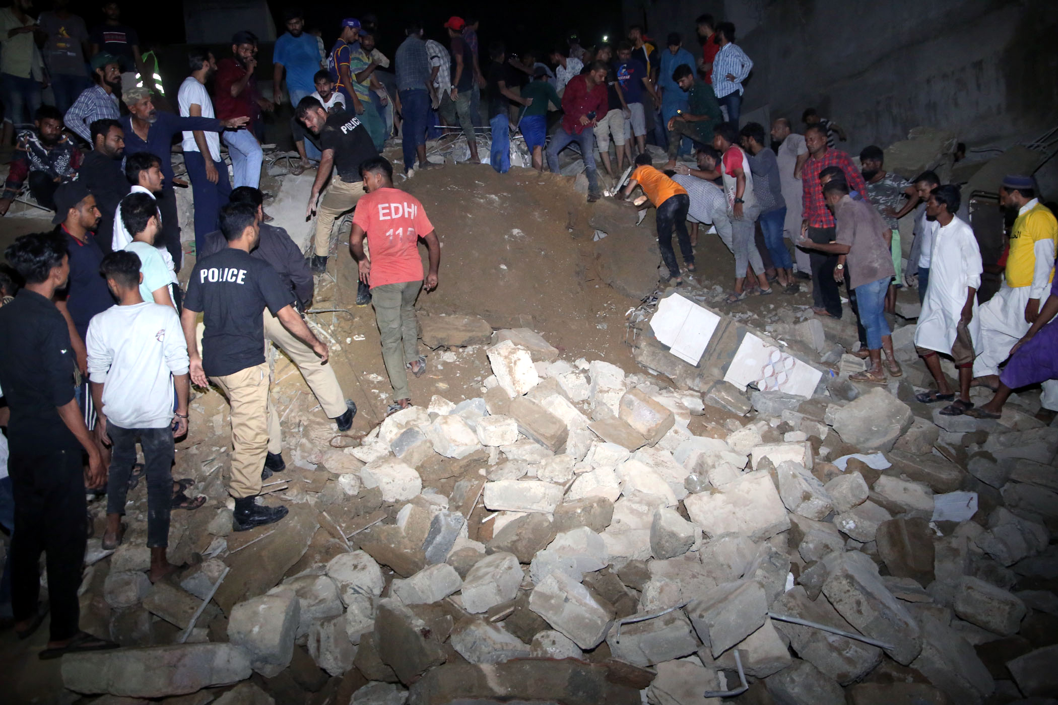 8月16日凌晨,人們在巴基斯坦卡拉奇建筑倒塌現(xiàn)場搜尋幸存者。