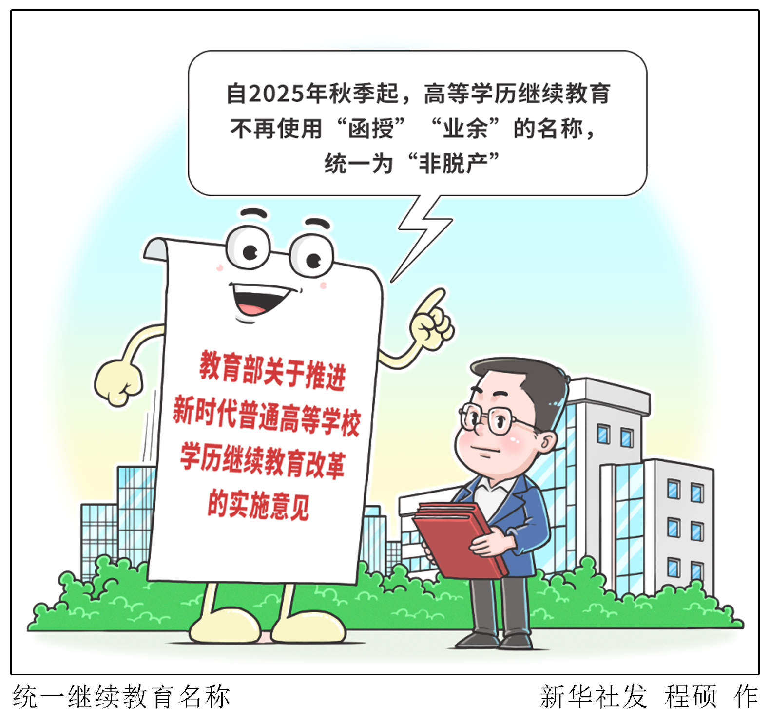 記者8月17日從教育部獲悉,《教育部關(guān)于推進(jìn)新時(shí)代普通高等學(xué)校學(xué)歷繼續(xù)教育改革的實(shí)施意見(jiàn)》近日印發(fā),要求自2025年秋季起,高等學(xué)歷繼續(xù)教育不再使用“函授”“業(yè)余”的名稱,統(tǒng)一為“非脫產(chǎn)”,主辦高??筛鶕?jù)專業(yè)特點(diǎn)和學(xué)生需求等,靈活采取線上線下相結(jié)合形式教學(xué)。