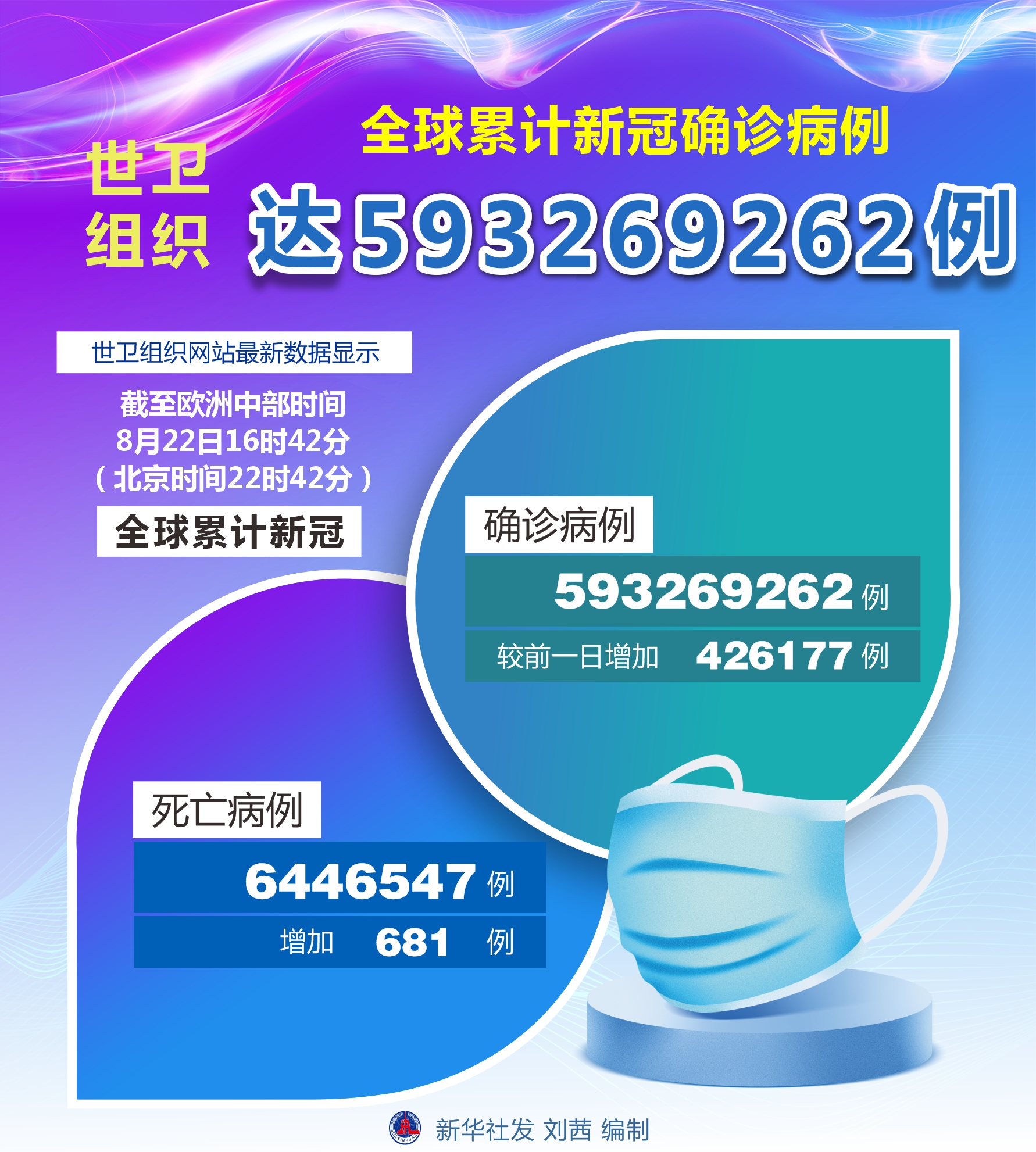 世衛(wèi)組織:全球累計(jì)新冠確診病例達(dá)593269262例