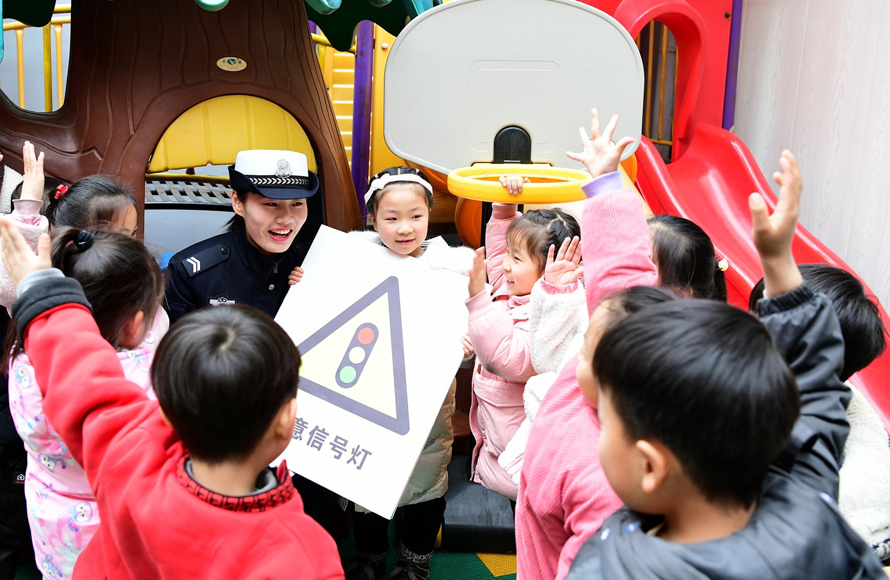 3月23日,安徽省阜南縣公安局交管大隊(duì)組織民輔警走進(jìn)轄區(qū)中小學(xué)校和幼兒園,向?qū)W生們宣講交通安全常識(shí),增強(qiáng)學(xué)生們的出行安全意識(shí)。