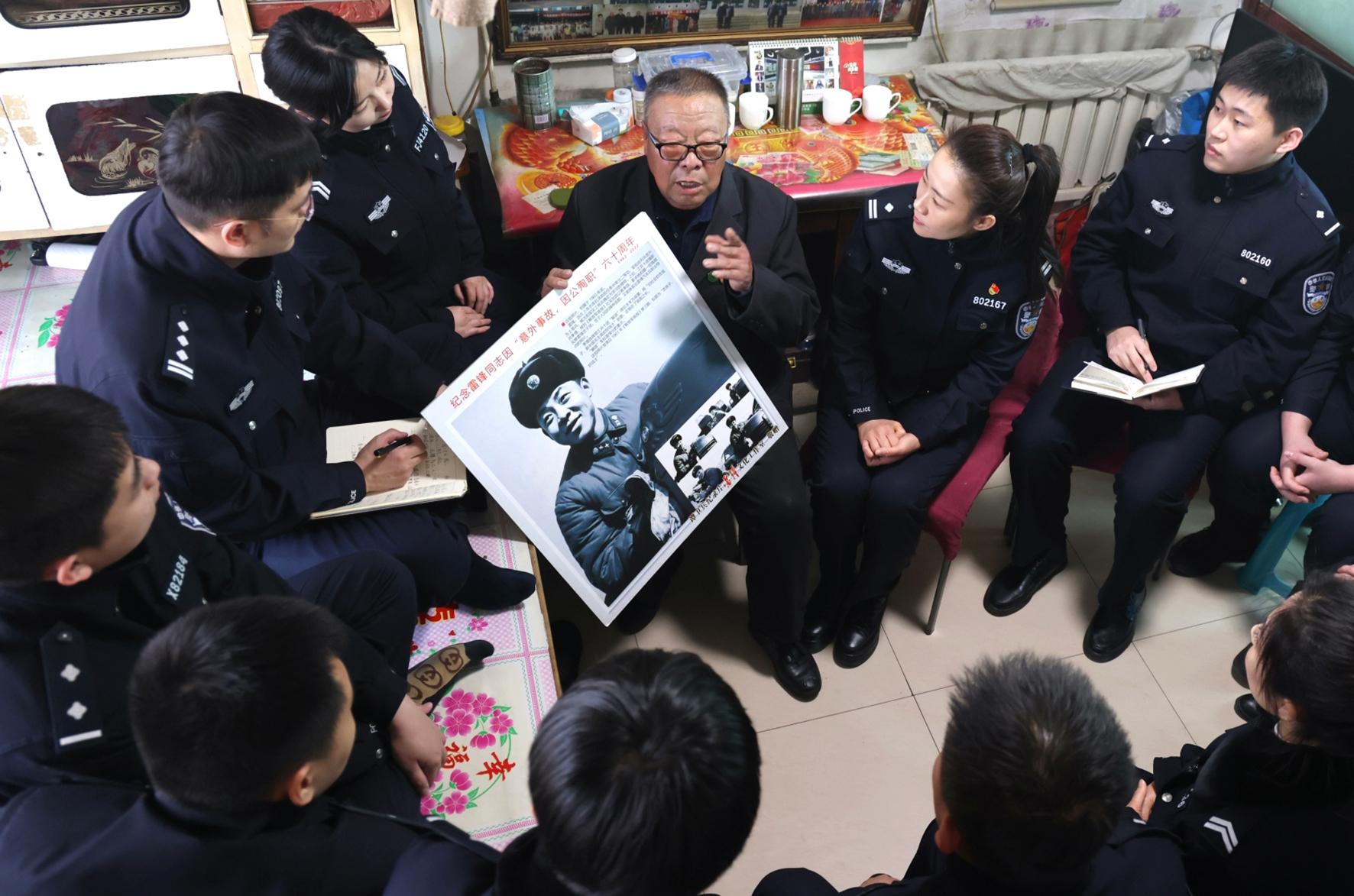 “學(xué)雷鋒要有耐心、有愛(ài)心,做點(diǎn)實(shí)在事……”3月2日,遼寧省遼陽(yáng)市公安局弓長(zhǎng)嶺分局組織民輔警來(lái)到雷鋒義弟、72歲的呂學(xué)廣家里,聆聽(tīng)他講述和雷鋒在一起的故事。