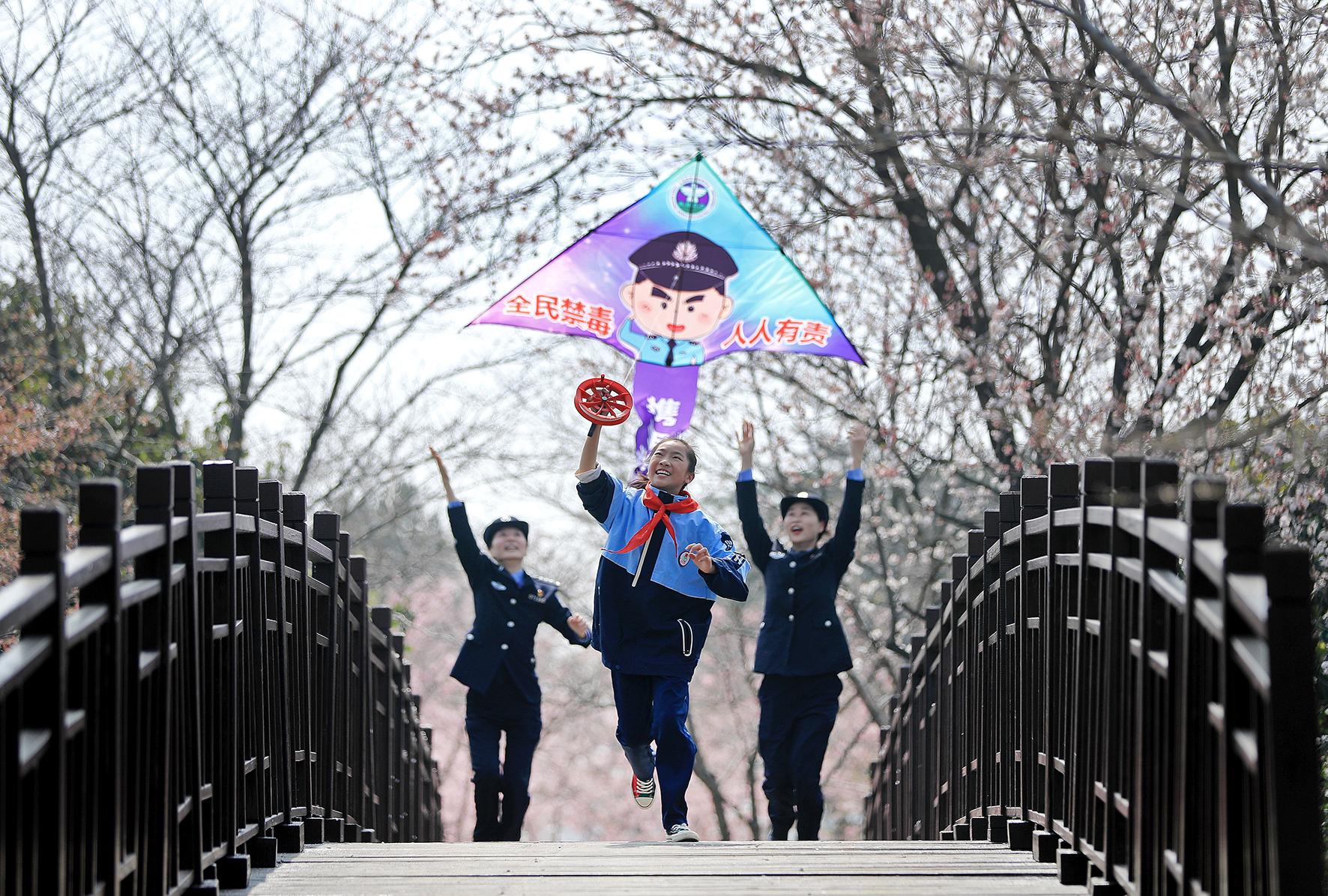 3月9日,湖北省沙洋縣公安局禁毒大隊(duì)民警在曾集鎮(zhèn)雷都村櫻花園,組織春游師生開(kāi)展“無(wú)毒青春”禁毒風(fēng)箏放飛宣傳活動(dòng)。