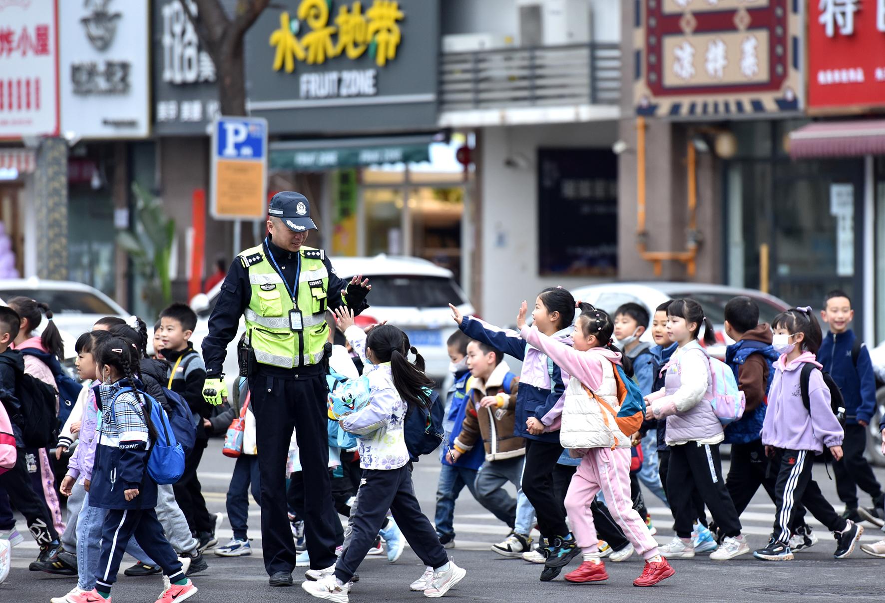 3月27日,四川省綿陽(yáng)市多所小學(xué)組織學(xué)生開(kāi)展春游活動(dòng),綿陽(yáng)市公安局交警支隊(duì)直屬一大隊(duì)增派警力在學(xué)校周邊、復(fù)雜路段指揮護(hù)送師生步行或乘車出行,確保安全和道路暢通。