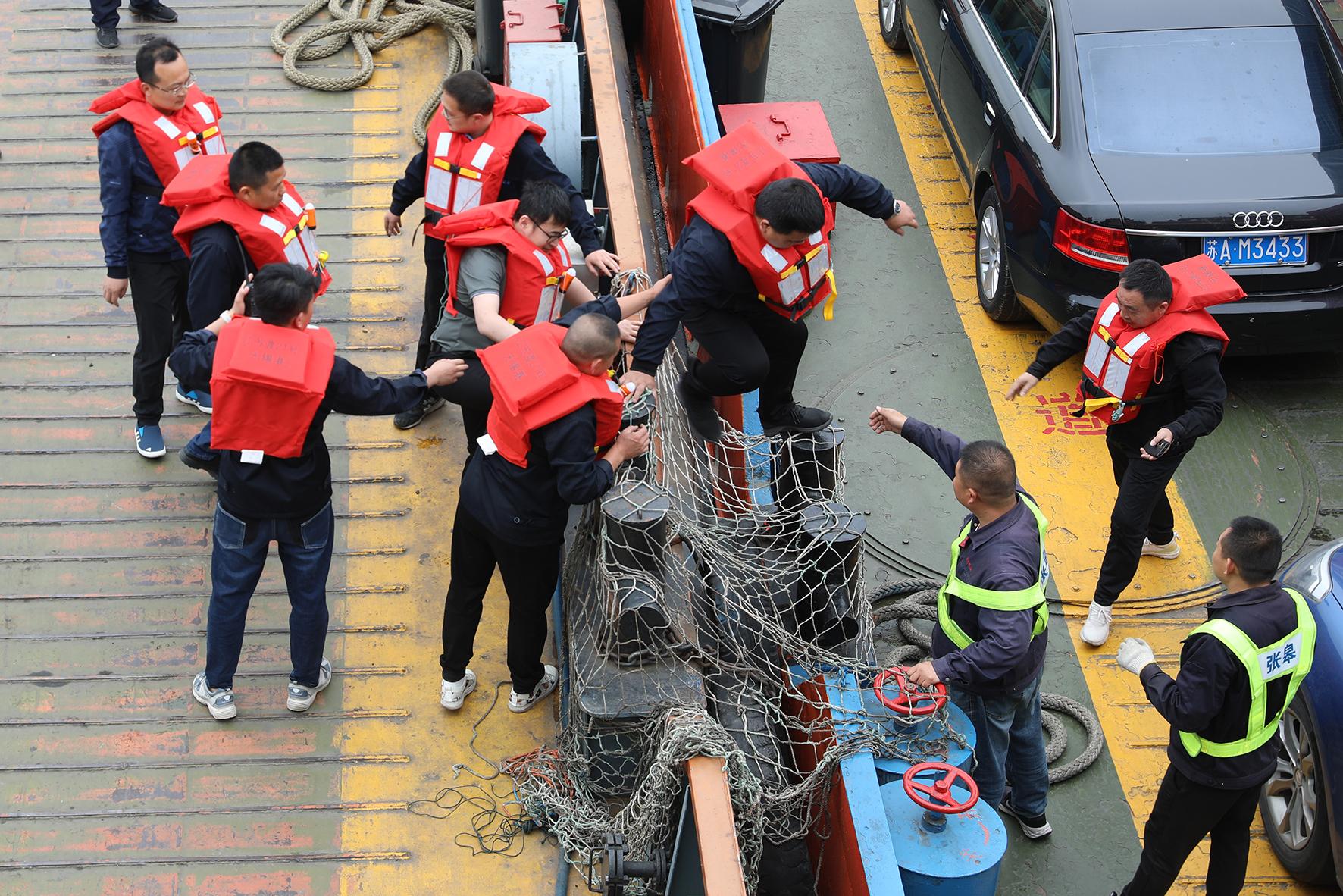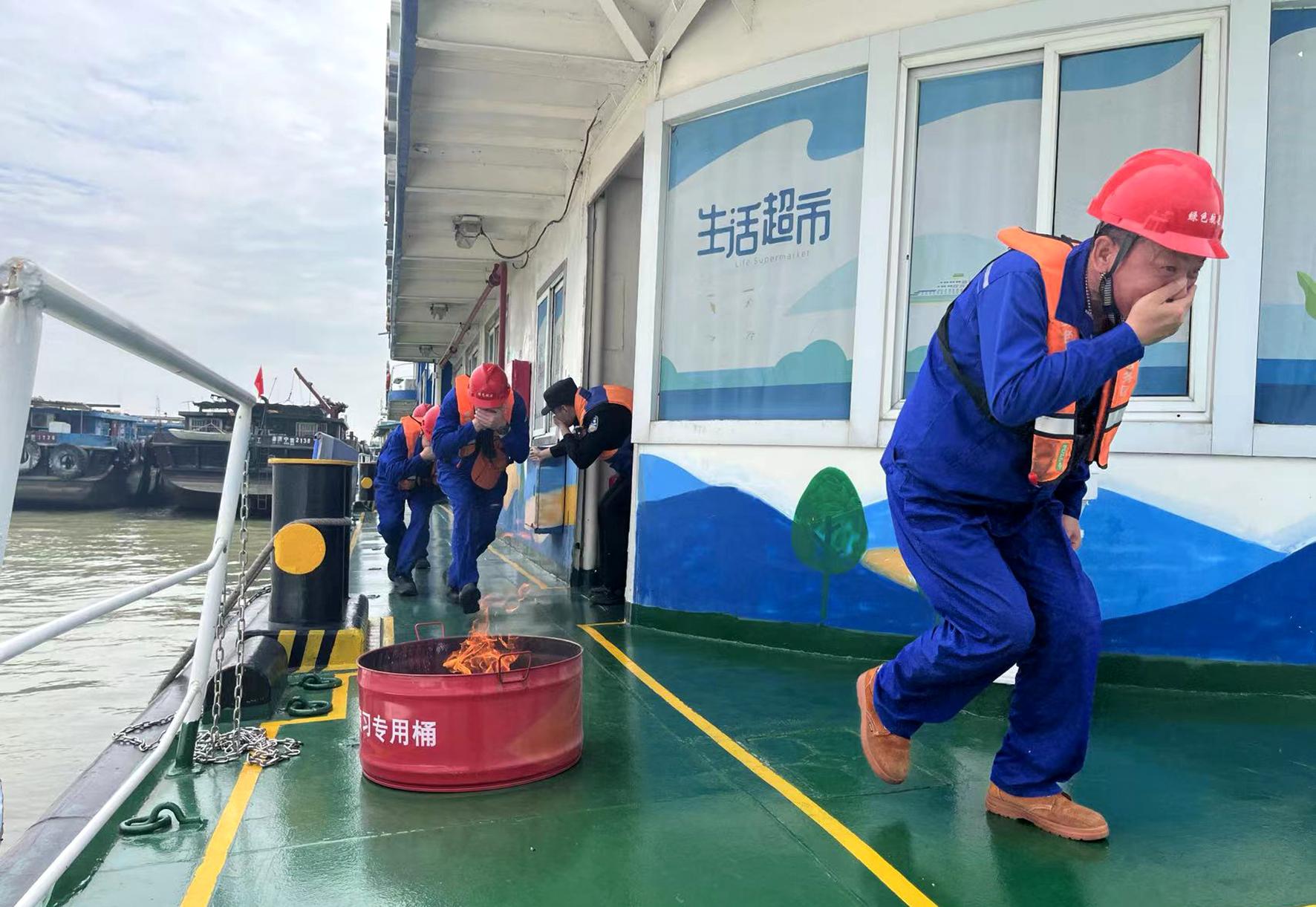 5月11日,長江航運公安局南通分局如皋派出所在南通市皋張汽渡開展消防安全演練。