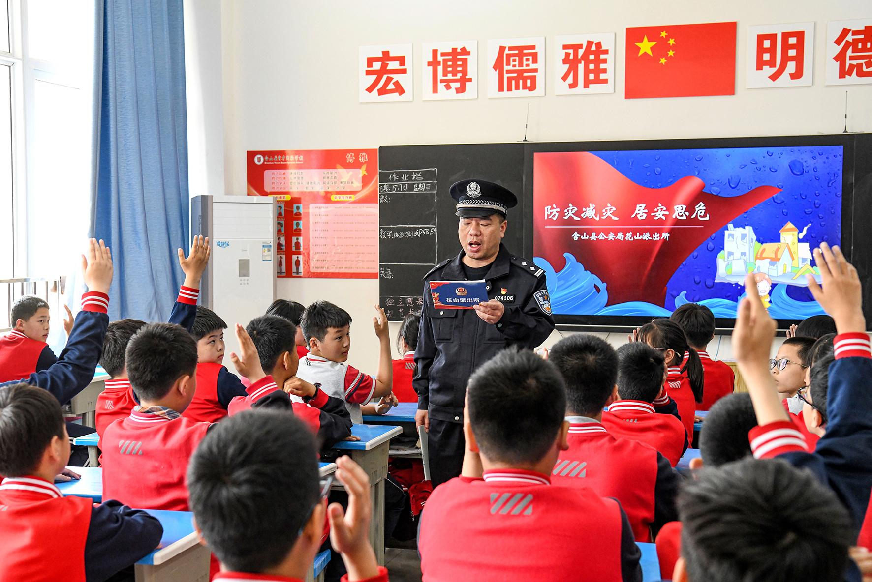 5月11日,安徽省含山縣公安局花山派出所組織民警走進轄區(qū)校園開展防災減災安全教育活動。