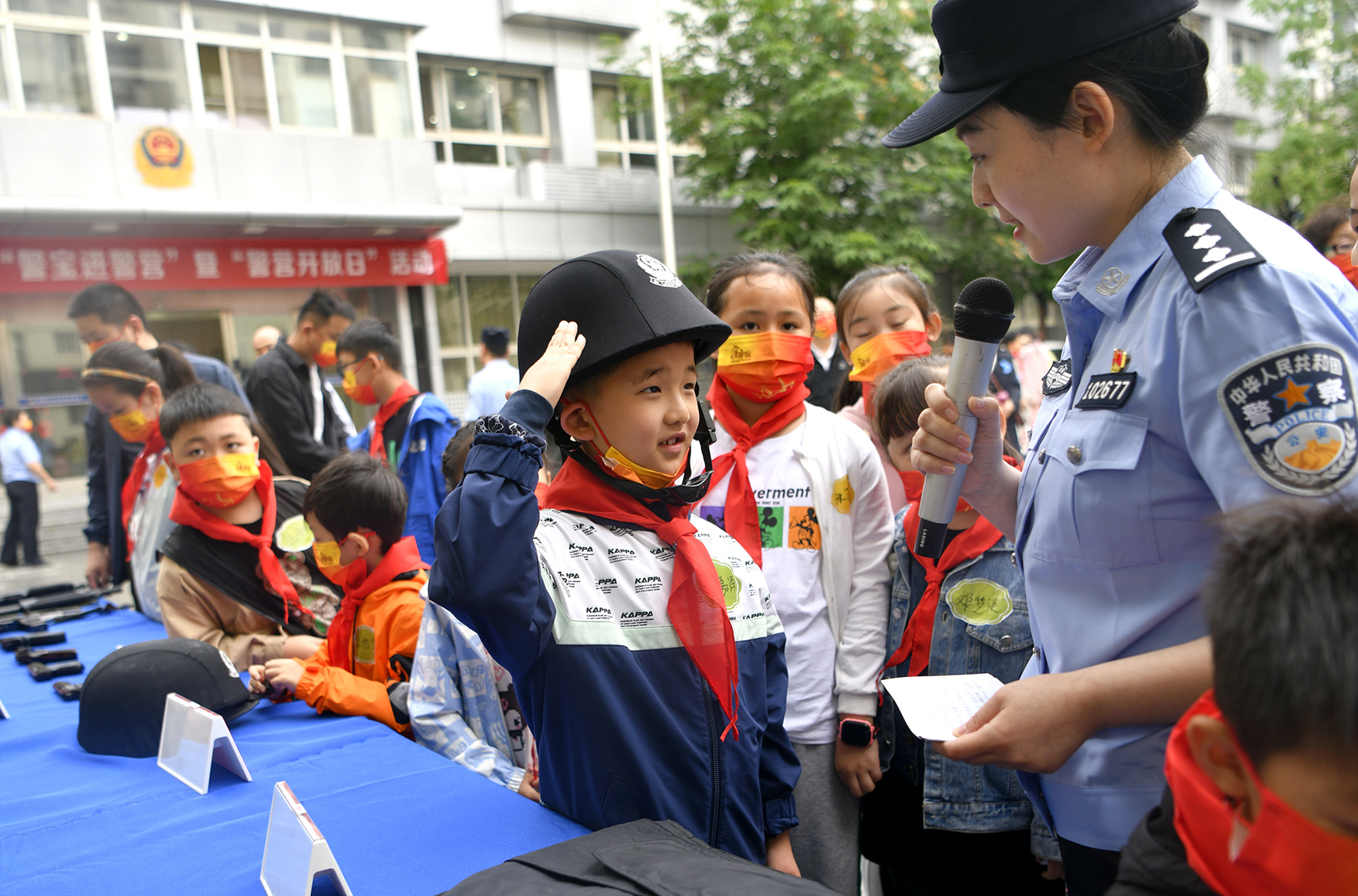 5月28日,山東省濟(jì)南市公安局市中區(qū)分局十六里河派出所聯(lián)合特巡警大隊在領(lǐng)秀城警務(wù)工作站舉行警營開放日活動,邀請小學(xué)生走進(jìn)警營體驗(yàn)參觀。