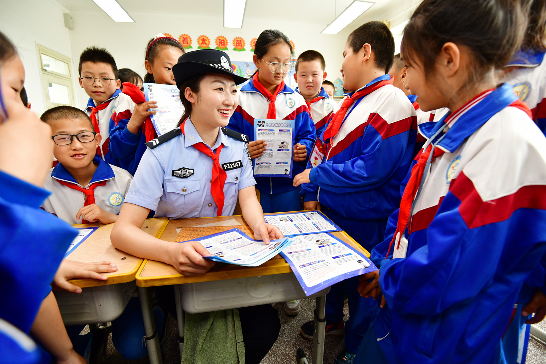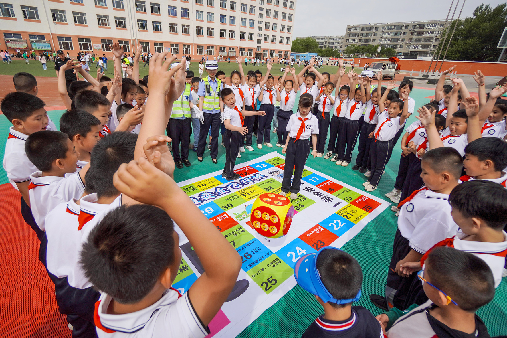 5月30日,遼寧省阜新市公安局交警支隊太平大隊民警來到轄區(qū)小學(xué)校,與同學(xué)們一起在互動游戲中學(xué)習(xí)交通安全知識。