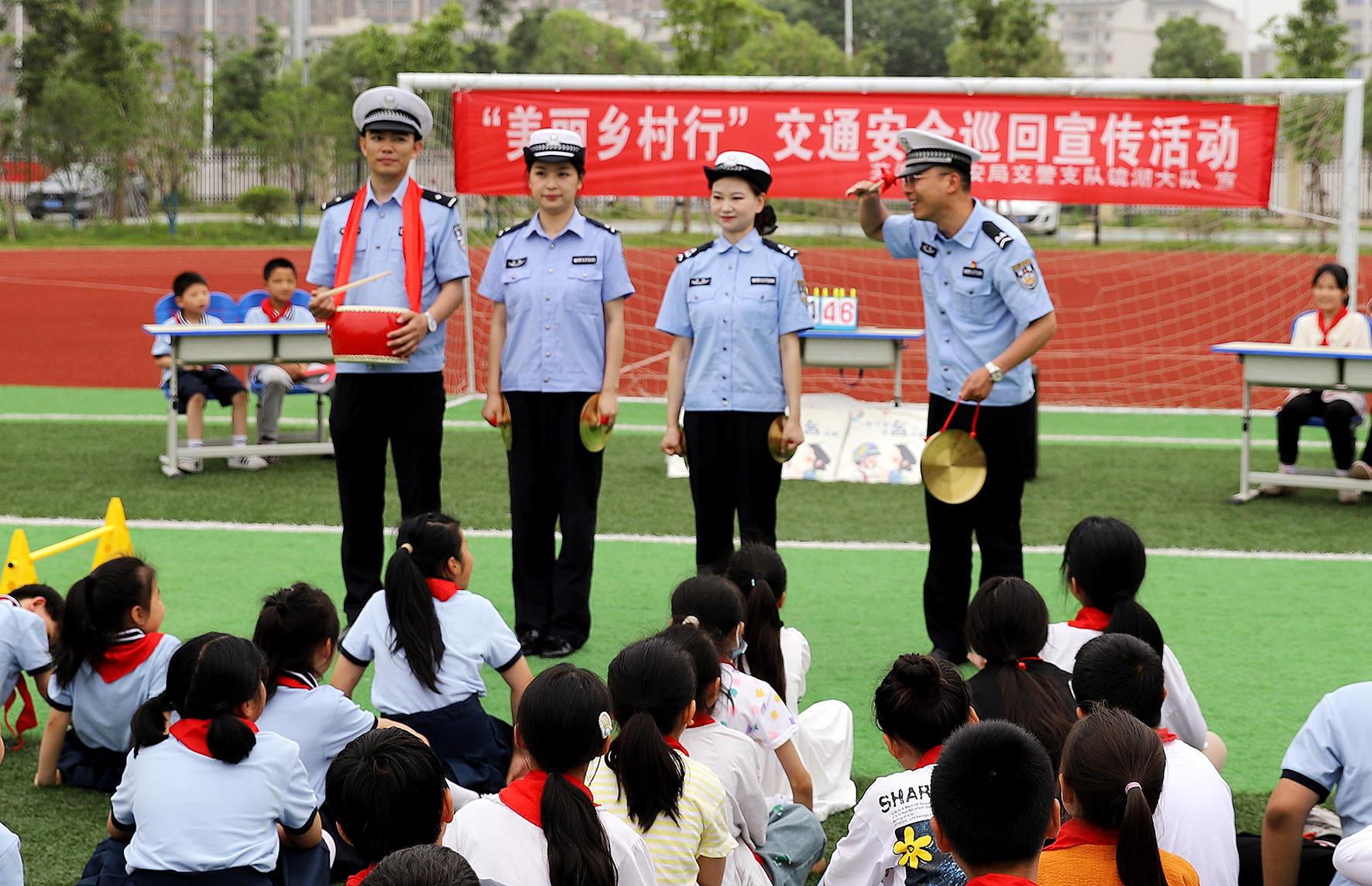 5月30日,安徽省蕪湖市公安局交警支隊民警走進北塘小學(xué)開展“美麗鄉(xiāng)村行”交通安全知識巡回宣講活動。民警采用說唱、搶答、游戲等多種形式,向孩子們宣傳交通安全知識。