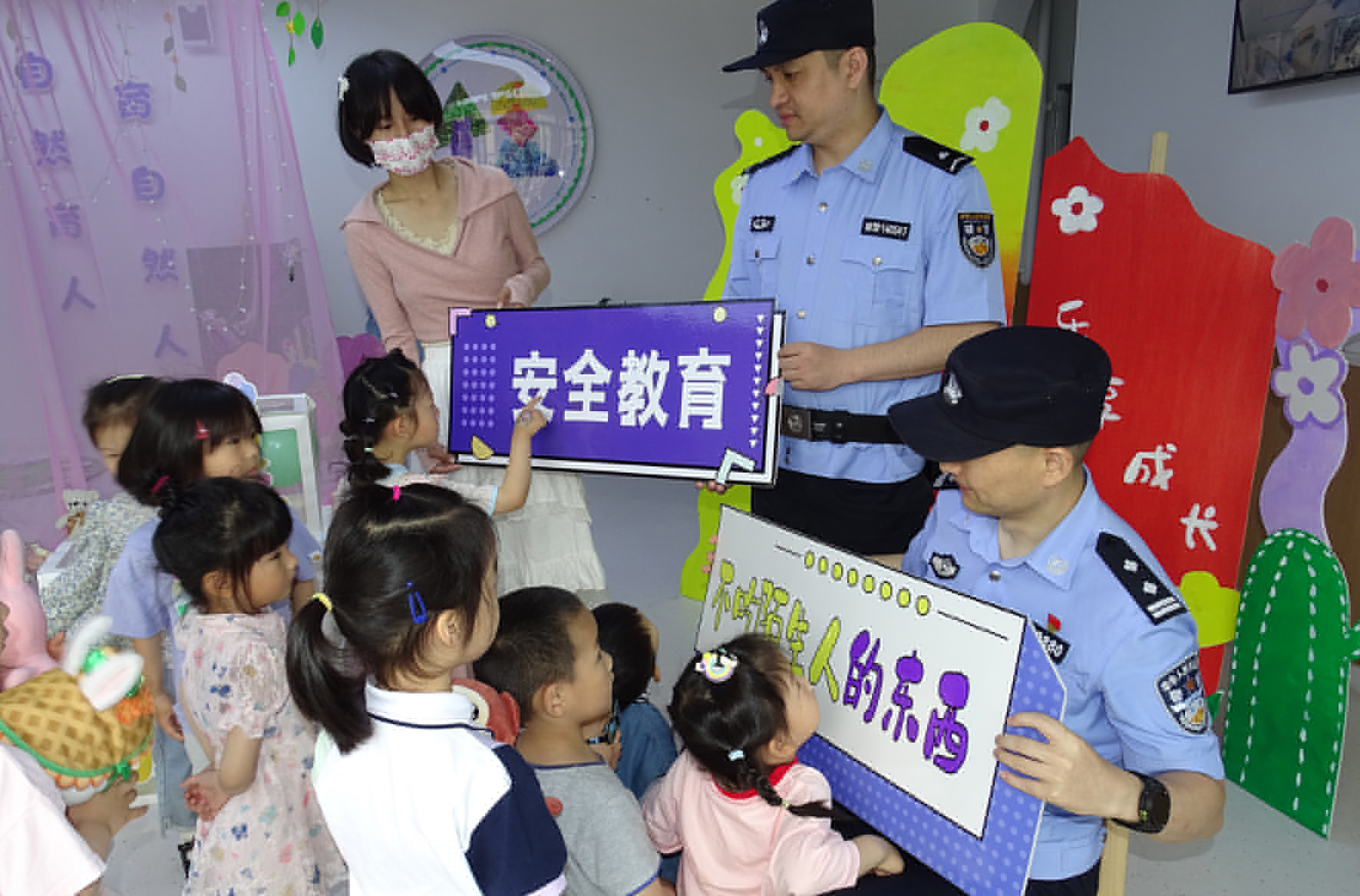 5月29日,河南省??h公安局白寺派出所民輔警走進轄區(qū)幼兒園,通過游戲互動方式,面對面向小朋友講述各類安全防護知識,為孩子們送上節(jié)日平安禮包。