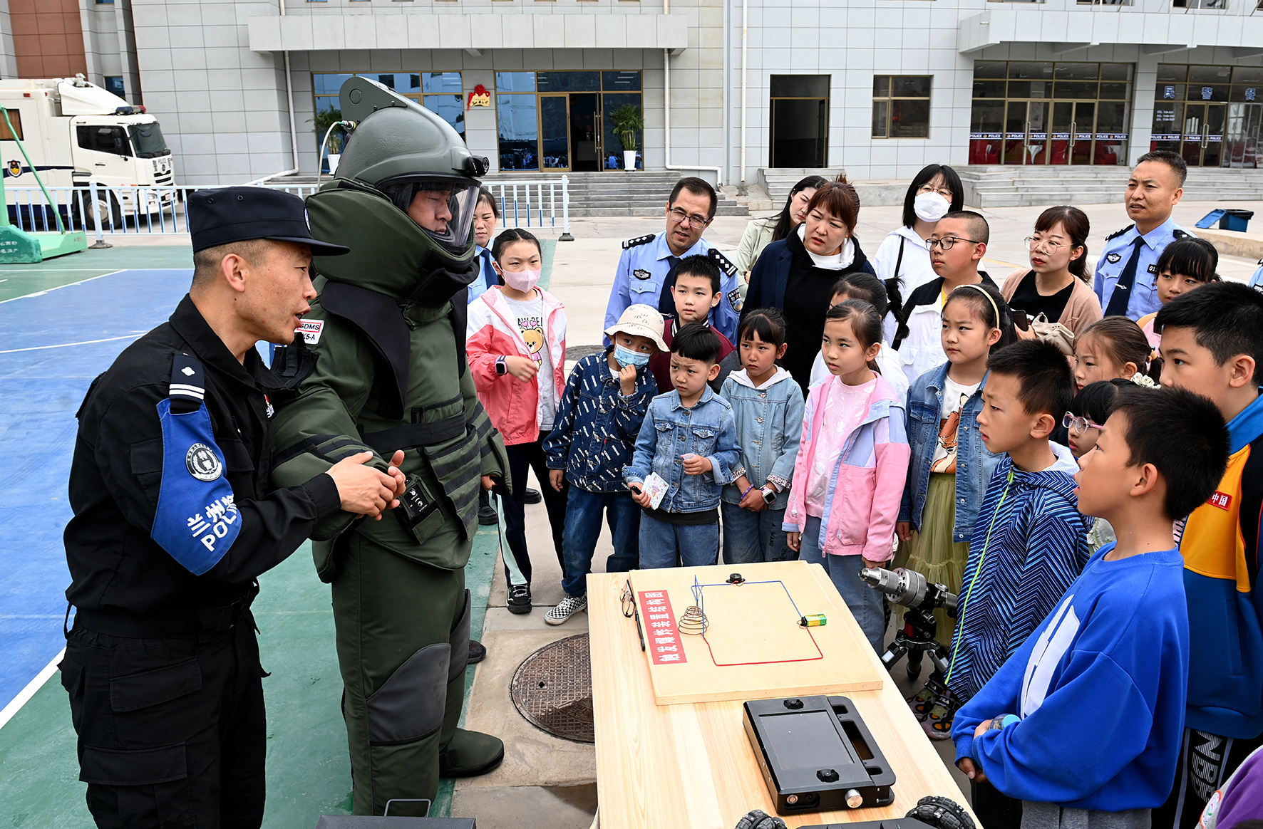 5月27日,甘肅省蘭州市公安局組織開展“童心連警心·歡樂慶六一”警寶進警營活動,邀請民輔警適齡子女走進警營,近距離感受警察風(fēng)采。