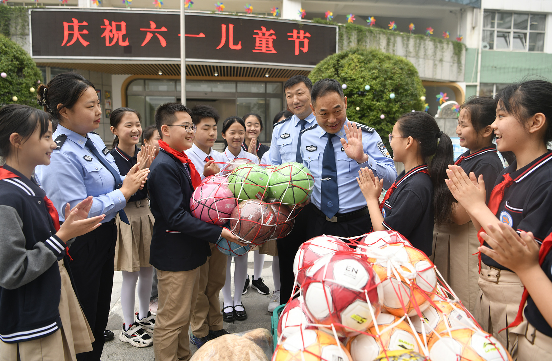 5月30日,河南省鄭州市公安局金水分局民警帶著禮物來到轄區(qū)河南省實驗小學(xué),與同學(xué)們一起歡慶“六一”。