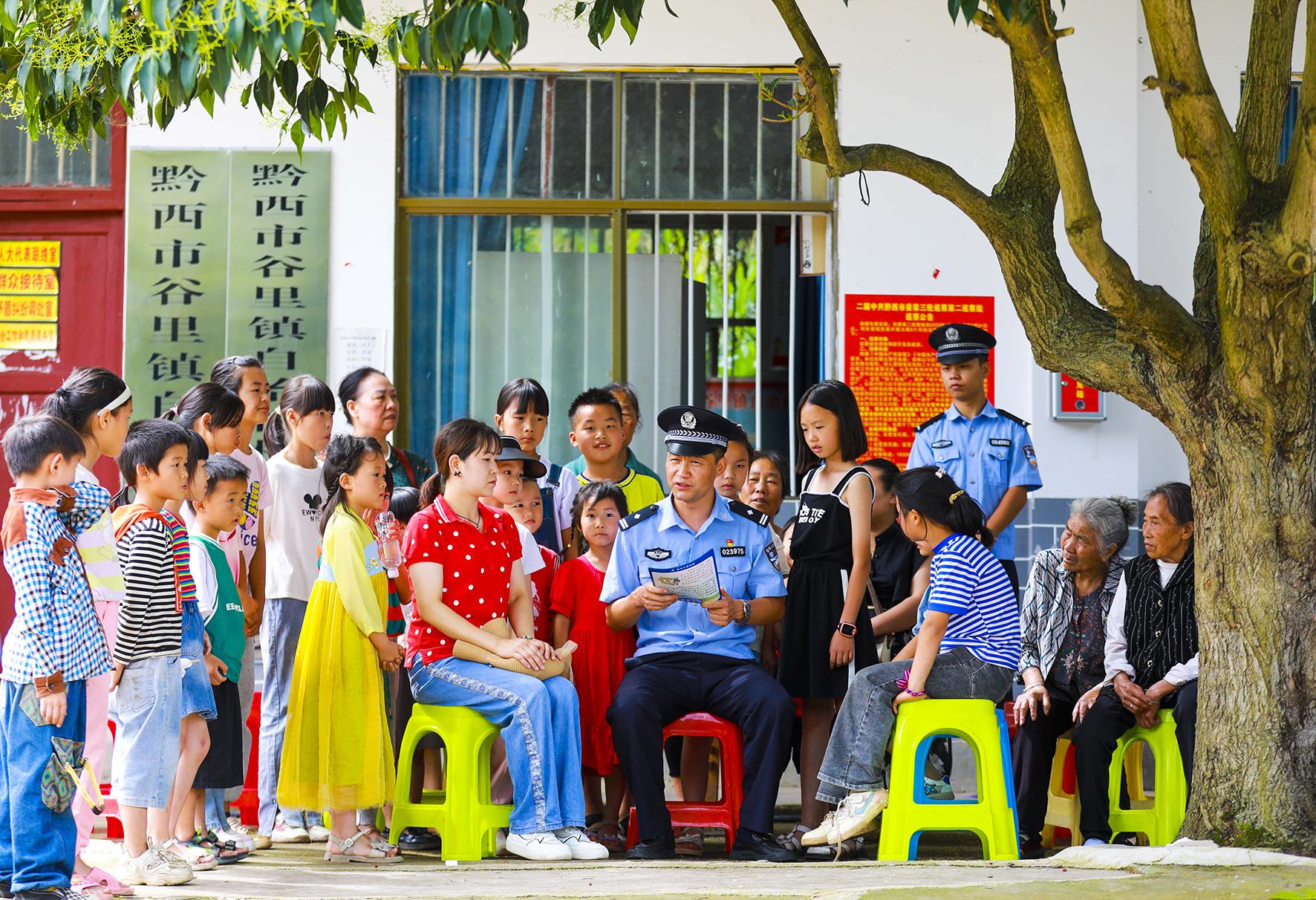 7月15日,貴州省黔西市公安局谷里派出所民警在谷里鎮(zhèn)自治村開展“法治宣傳進(jìn)鄉(xiāng)村”活動,向山區(qū)群眾宣講預(yù)防養(yǎng)老詐騙、禁毒知識、防火、防盜等,提升群眾的安全防范意識。