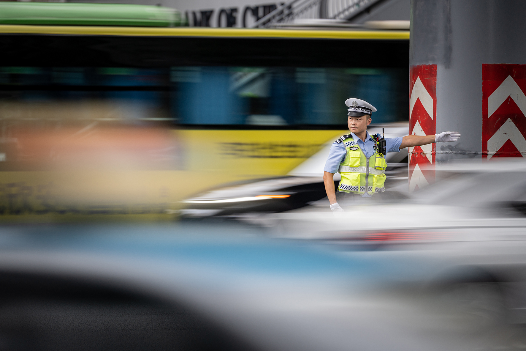 8月8日,四川省綿陽(yáng)市出現(xiàn)34℃高溫天氣。綿陽(yáng)市公安局交警直屬一大隊(duì)民警堅(jiān)守路面,冒高溫指揮疏導(dǎo)交通,確保道路安全暢通。