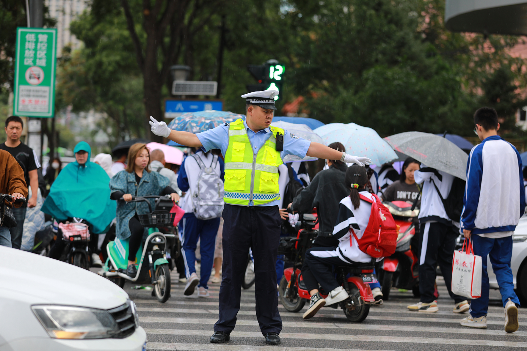 8月29日,遼寧省阜新市公安局交警支隊細(xì)河交警大隊民警在護(hù)學(xué)崗執(zhí)勤。