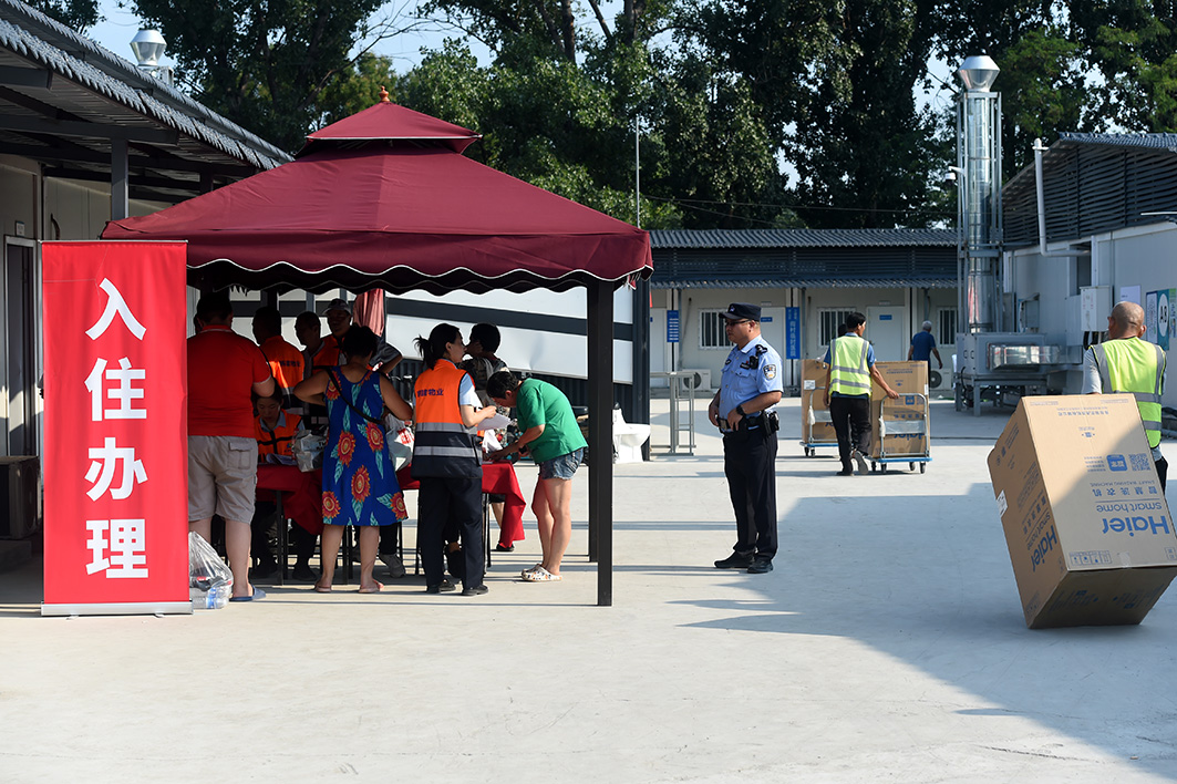 8月13日,房山區(qū)啟用閻村公寓西區(qū)作為集中安置點,同時設(shè)立了由7名民警值守的安置點警務(wù)站。