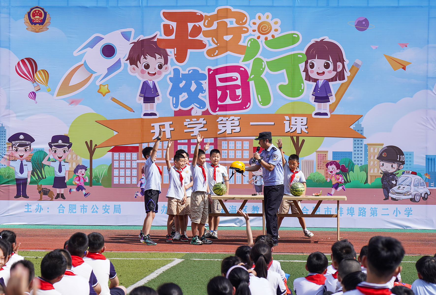 8月31日,安徽省合肥市公安局組織多警種部門走進(jìn)瑤海區(qū)蚌埠路第二小學(xué)開展“平安校園行 開學(xué)第一課”活動(dòng)。
