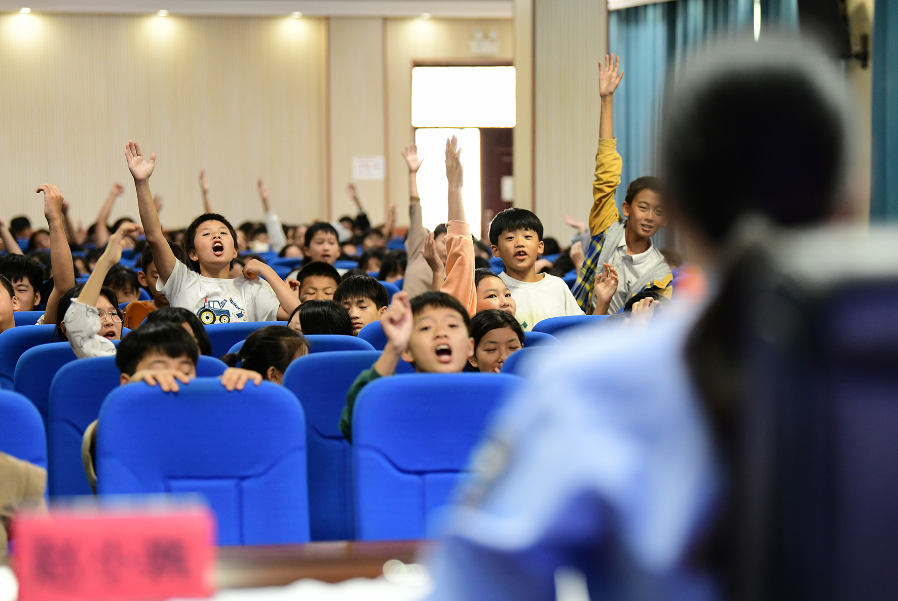 9月13日,安徽省阜南縣王堰鎮(zhèn)中心學(xué)校的學(xué)生踴躍回答防范網(wǎng)絡(luò)電信詐騙知識(shí)問題。為提高青少年網(wǎng)絡(luò)安全防范意識(shí),阜南縣公安局網(wǎng)絡(luò)安全民警走進(jìn)校園,向師生們宣講如何安全文明上網(wǎng)、預(yù)防網(wǎng)絡(luò)詐騙技巧等知識(shí)。