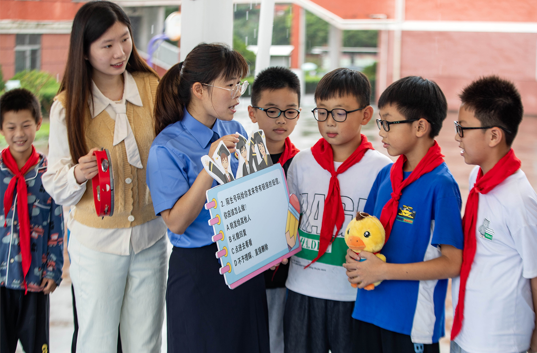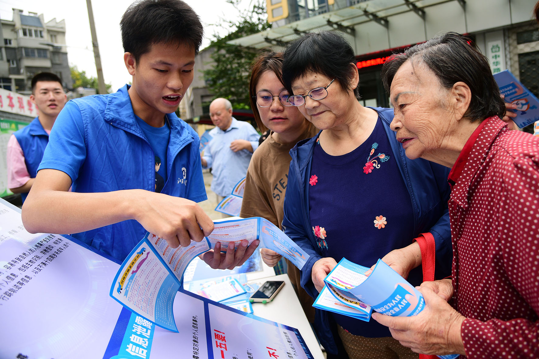9月16日,在江蘇省鎮(zhèn)江市迎江路中心社區(qū),江蘇科技大學(xué)志愿者向居民宣講網(wǎng)絡(luò)安全與防電信詐騙等知識(shí)。