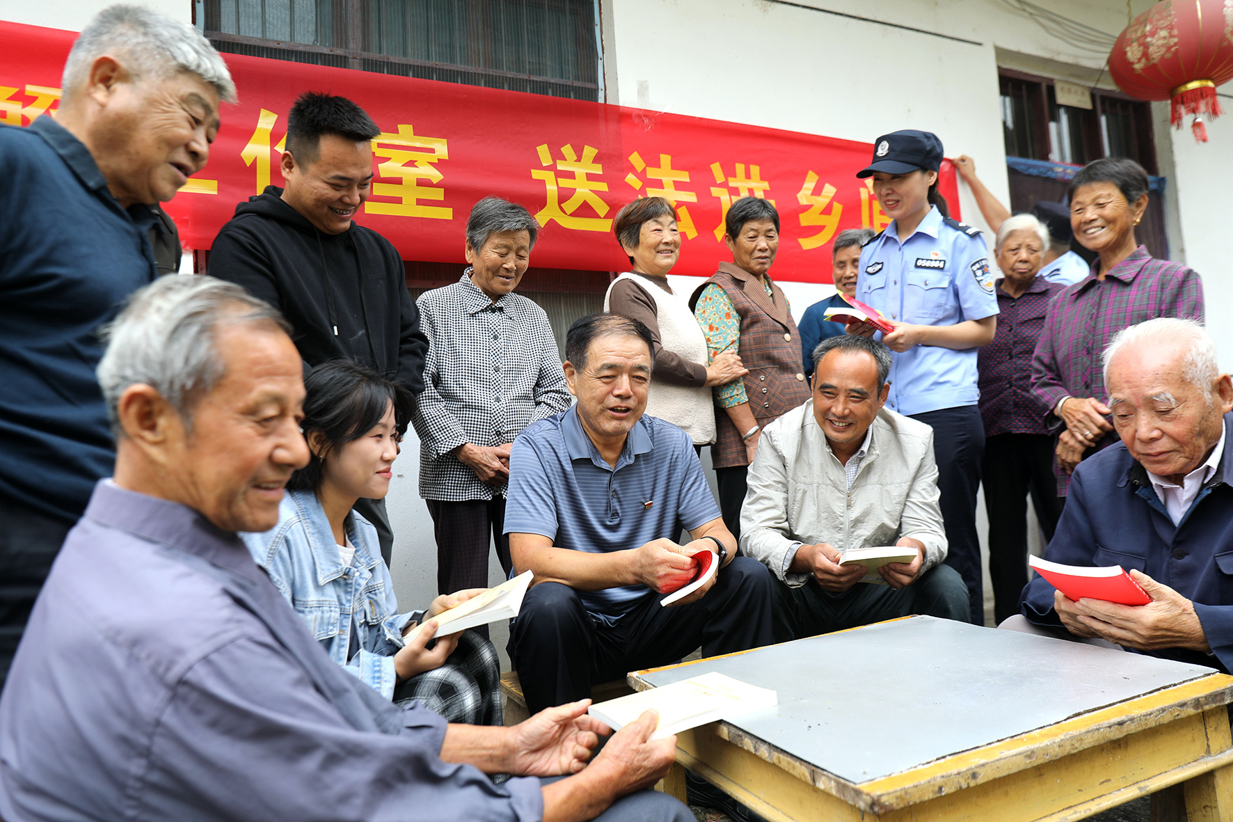 9月22日,安徽省舒城縣公安局杭埠派出所“老吳調(diào)解工作室”吳修富攜同駐村民警來到轄區(qū)河南村,向村民開展法治宣傳。今年66歲的吳修富是一名退休民警,被派出所特聘為調(diào)解工作室調(diào)解員,負責(zé)派出所疑難復(fù)雜矛盾糾紛調(diào)處?!袄蠀钦{(diào)解工作室”是全縣首個以個人名義命名的警民聯(lián)調(diào)室,遇事開展調(diào)解空閑時間下鄉(xiāng)普法。