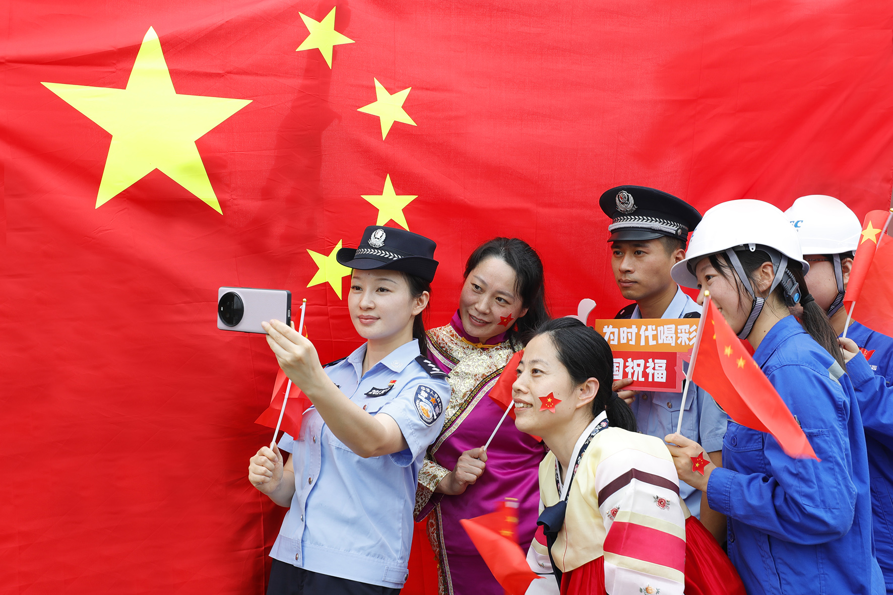 9月27日,江陰出入境邊防檢查站民警與口岸轄區(qū)少數(shù)民族群眾一同喜迎國慶中秋雙節(jié),共同表達(dá)對祖國的無限熱愛和美好祝福。