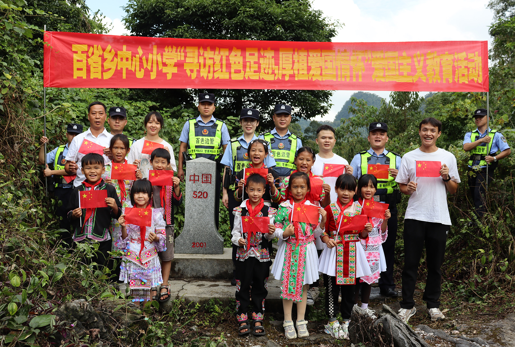 9月28日,廣西百色邊境管理支隊百省邊境派出所移民管理警察和百省鄉(xiāng)中心小學(xué)少數(shù)民族師生代表前往邊境開展“追尋紅色足跡 厚植愛國情懷”愛國主義教育活動。
