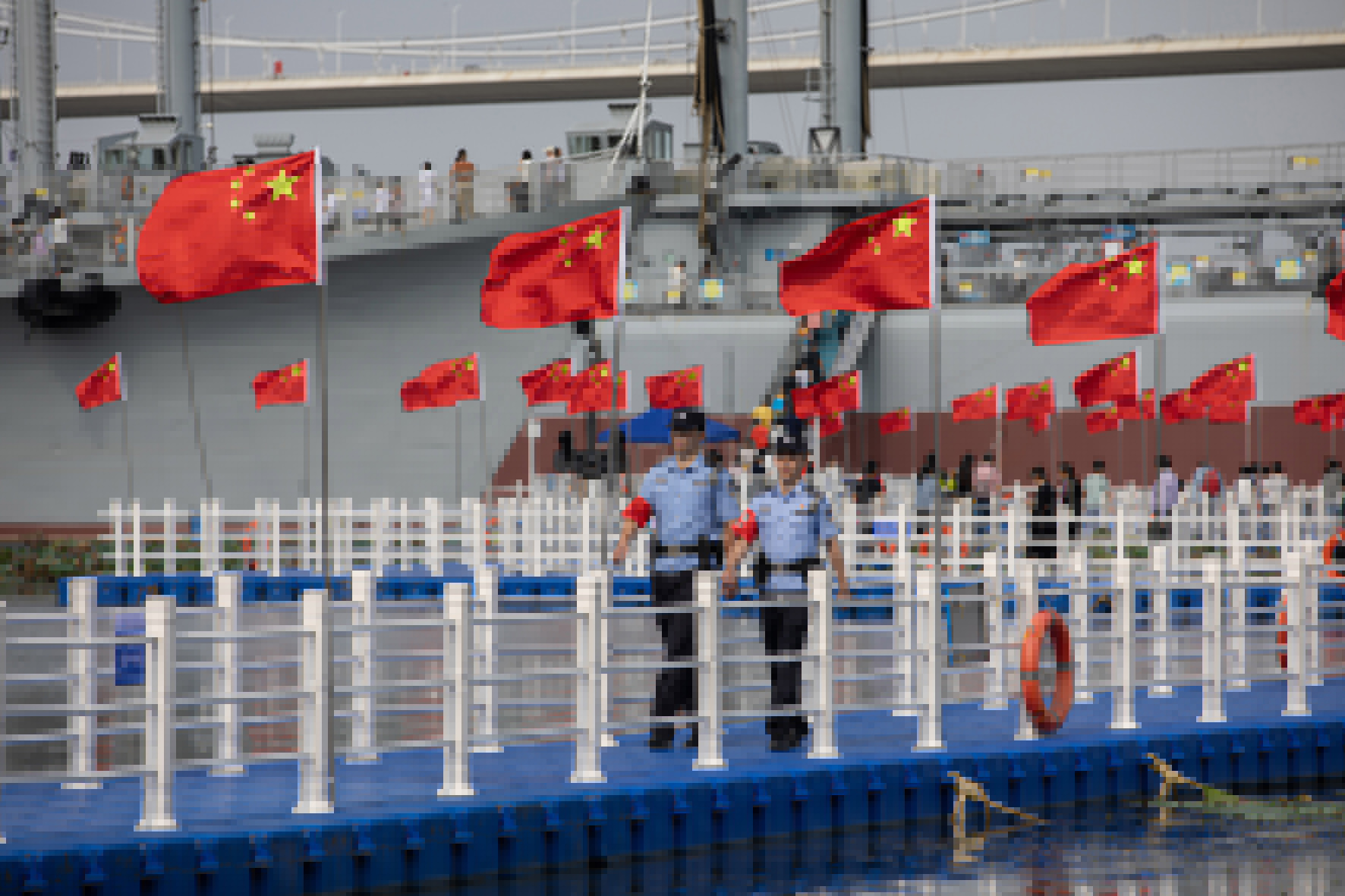 10月1日,長江航運公安局鎮(zhèn)江分局泰州派出所民警在泰州海軍艦艇文化園執(zhí)勤值守。