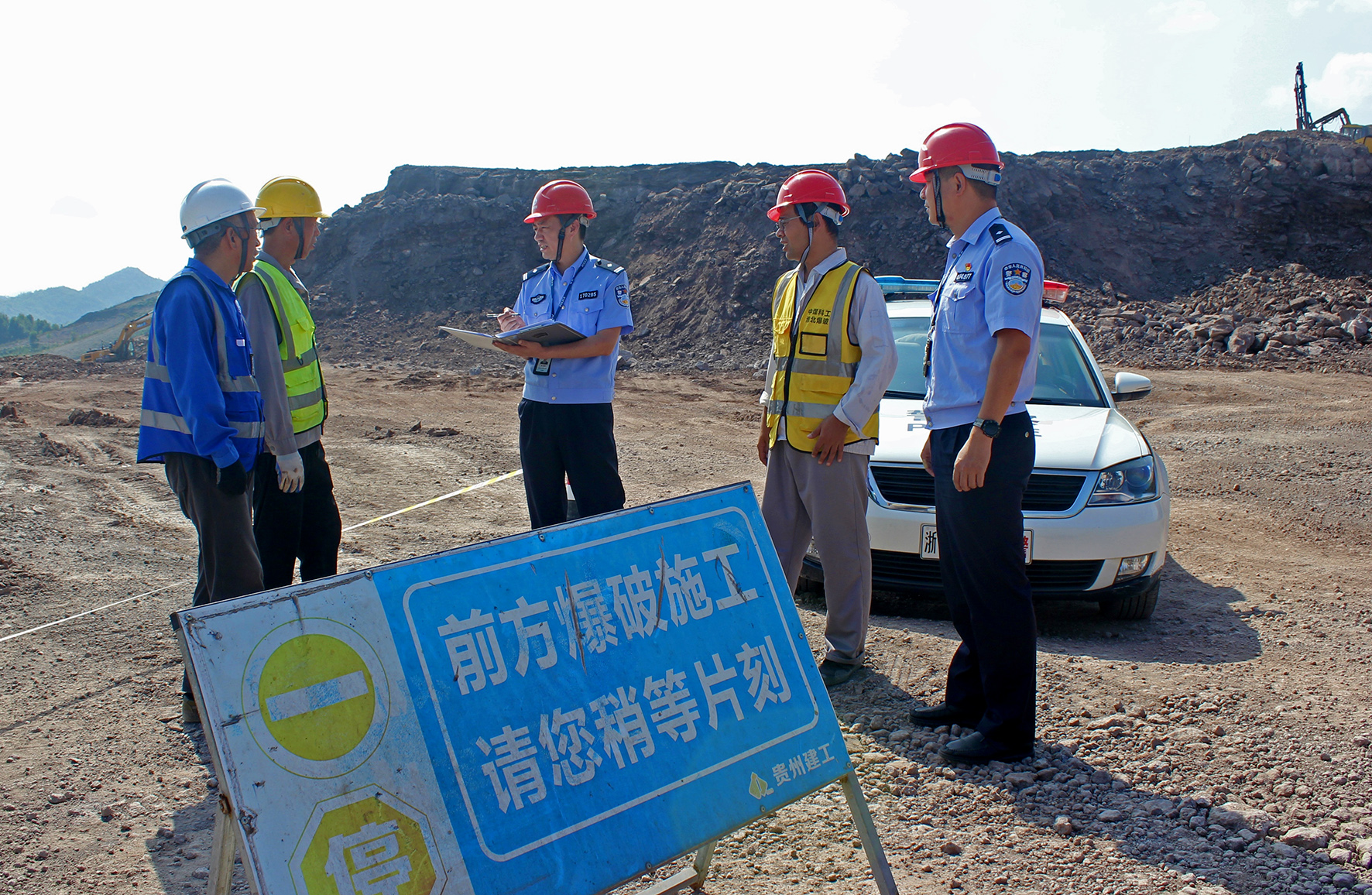 10月3日,浙江省臺州市天臺縣公安局治安大隊對某園區(qū)爆破作業(yè)現場進行實地監(jiān)查,強化防范措施,消除安全隱患。