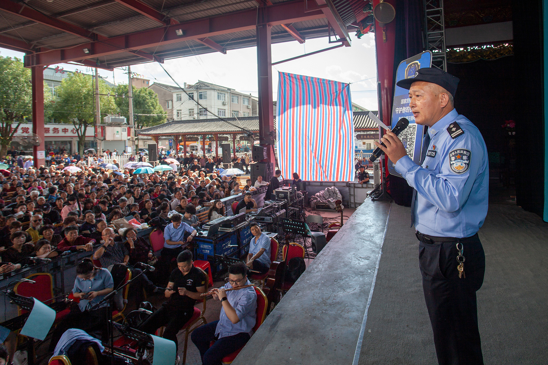 10月24日,浙江省臺(tái)州市公安局黃巖分局新前派出所民警來(lái)到轄區(qū)的西范村,借助村里舉辦社戲之契機(jī),開(kāi)展安全防范宣傳。