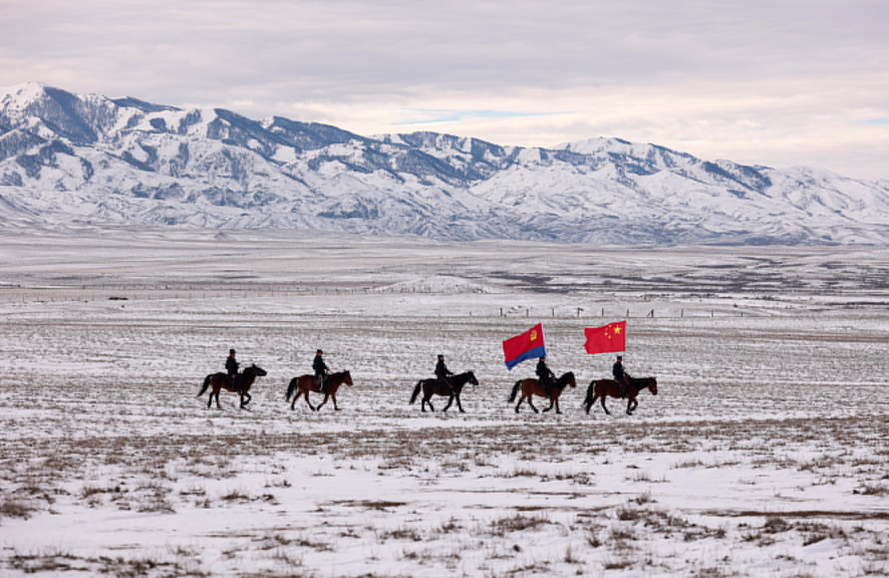 11月7日,新疆出入境邊防檢查總站阿勒泰邊境管理支隊恰勒什海邊境派出所民警騎馬翻山越嶺,深入一線巡邏踏查,確保邊境安全穩(wěn)定。