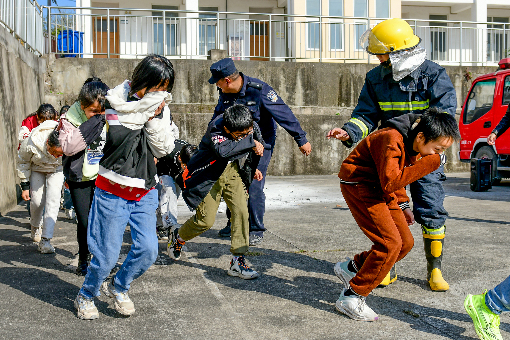 11月8日,在安徽省馬鞍山市和縣石楊初級中學(xué),石楊派出所民警聯(lián)手消防站消防員對學(xué)生開展消防知識講解和現(xiàn)場演練,以此提升廣大師生消防安全意識和自我保護(hù)能力。