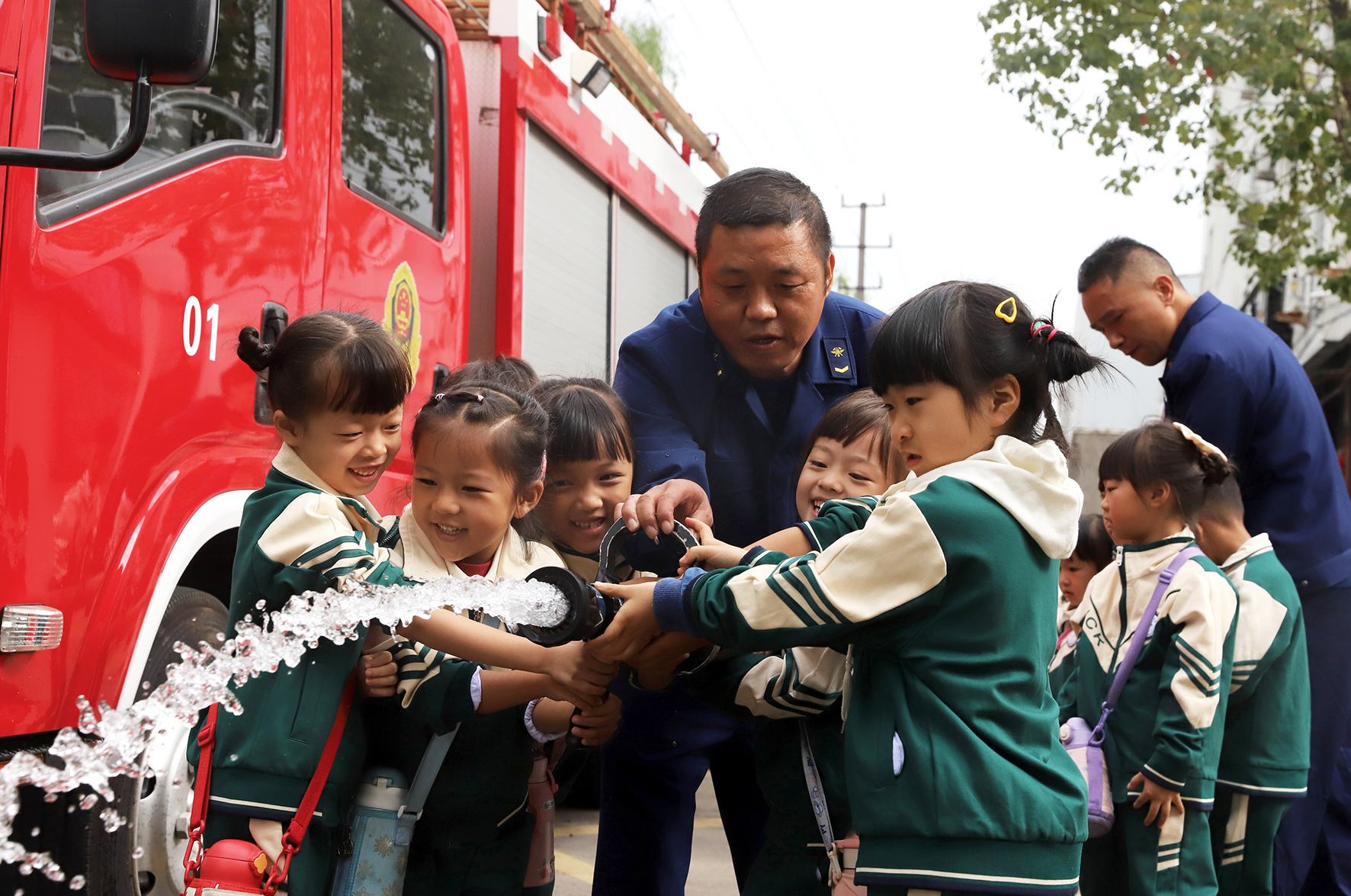 11月8日,浙江省臺州市路橋區(qū)橫街鎮(zhèn)中心幼兒園組織小朋友走進(jìn)當(dāng)?shù)叵谰仍?,讓小朋友零距離學(xué)習(xí)消防安全常識。