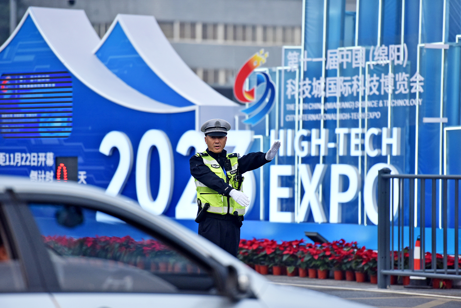 11月22日,第十一屆中國(guó)(綿陽(yáng))科技城國(guó)際科技博覽會(huì)開幕。四川省綿陽(yáng)市公安局交警支隊(duì)直屬一大隊(duì)科學(xué)制定交通組織措施,全員上路指揮疏導(dǎo),確保道路安全暢通。