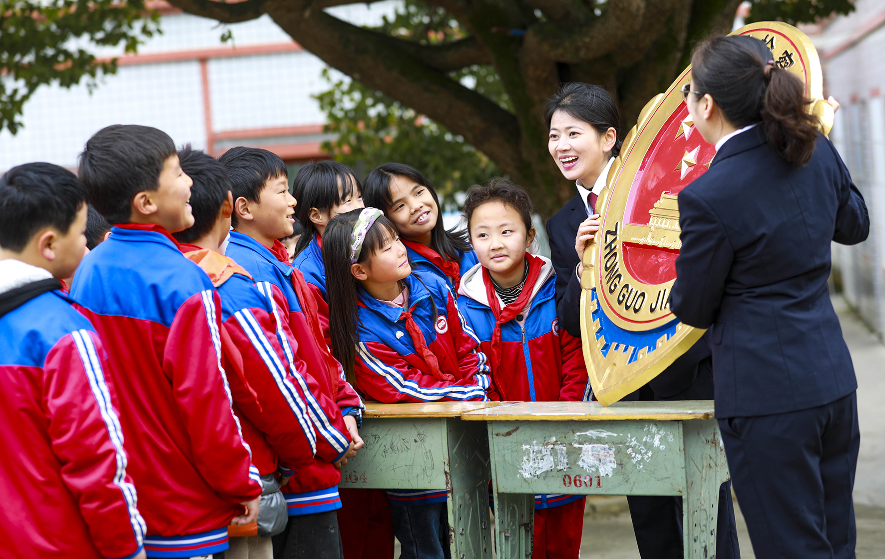 12月4日,安徽省含山縣司法局普法志愿者在姚廟中心學校向小學生宣講憲法知識。