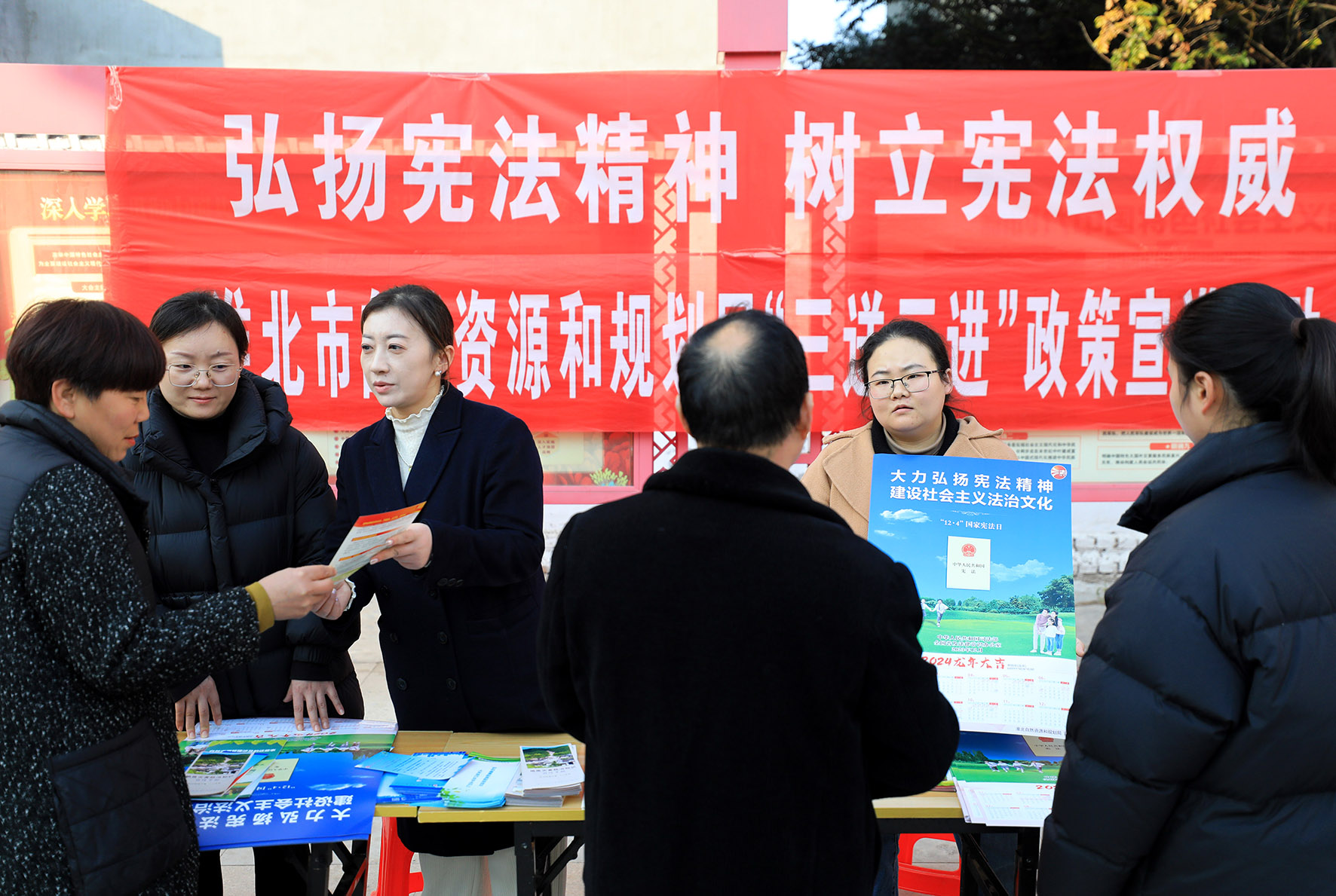 12月4日,安徽省淮北市自然資源和規(guī)劃局工作人員在代莊社區(qū)“國家憲法日”宣傳現(xiàn)場,為群眾解答法律問題、提供法律咨詢。