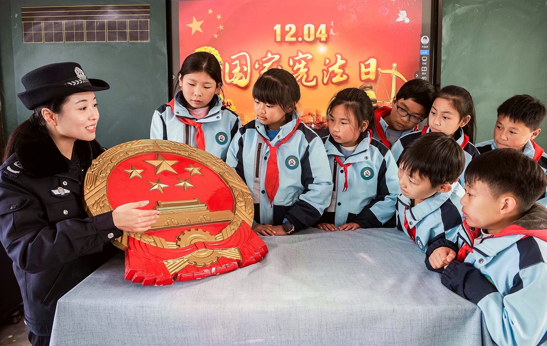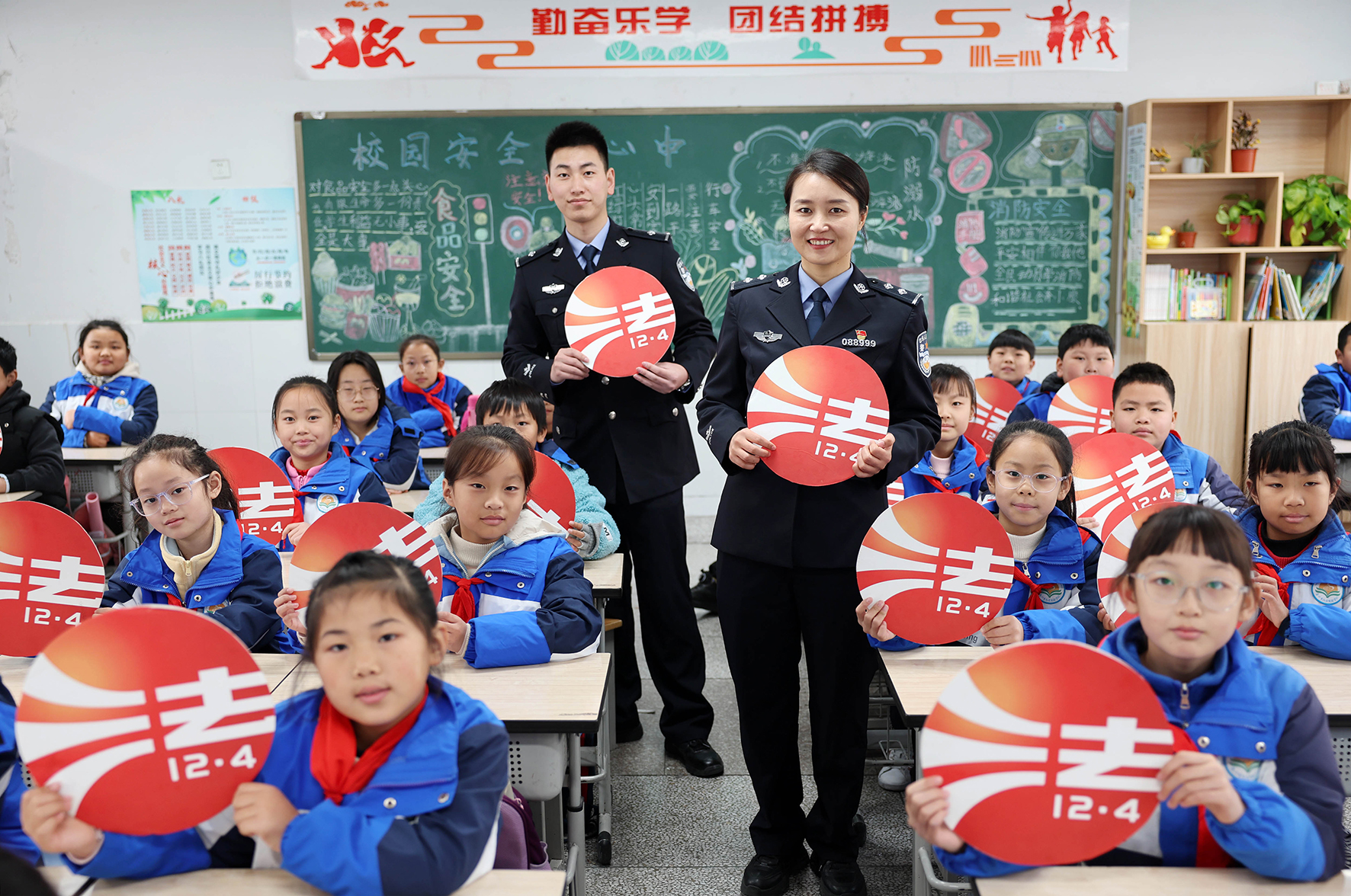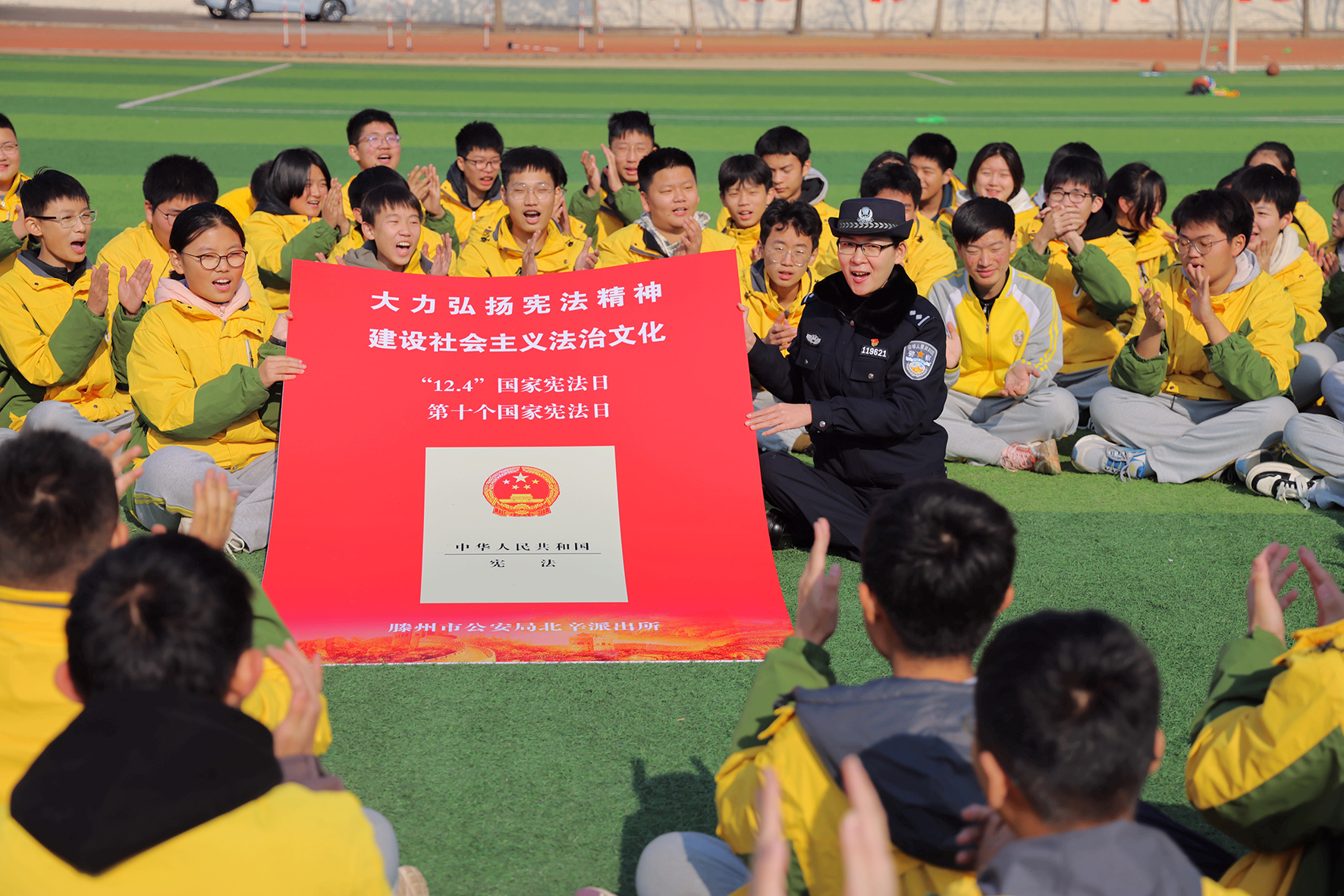 12月4日,山東省滕州市公安局北辛派出所民警為學生們講解憲法知識。