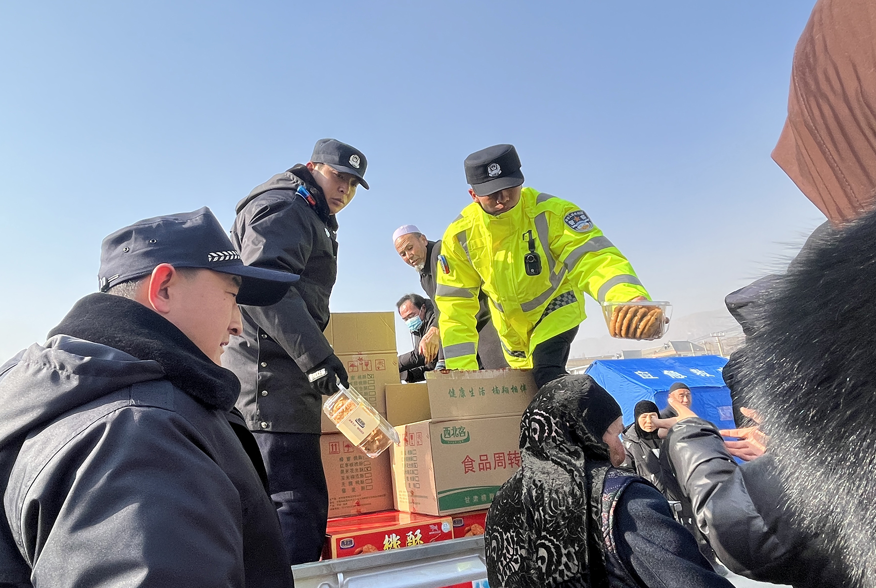 12月20日,甘肅省永靖縣公安局民輔警在積石山縣大河家臨時(shí)安置點(diǎn),按照抗震救災(zāi)指令要求,開展社會面管控、秩序維護(hù)、分發(fā)物資、搭建帳篷等工作,全力投入抗震救災(zāi)第一線。