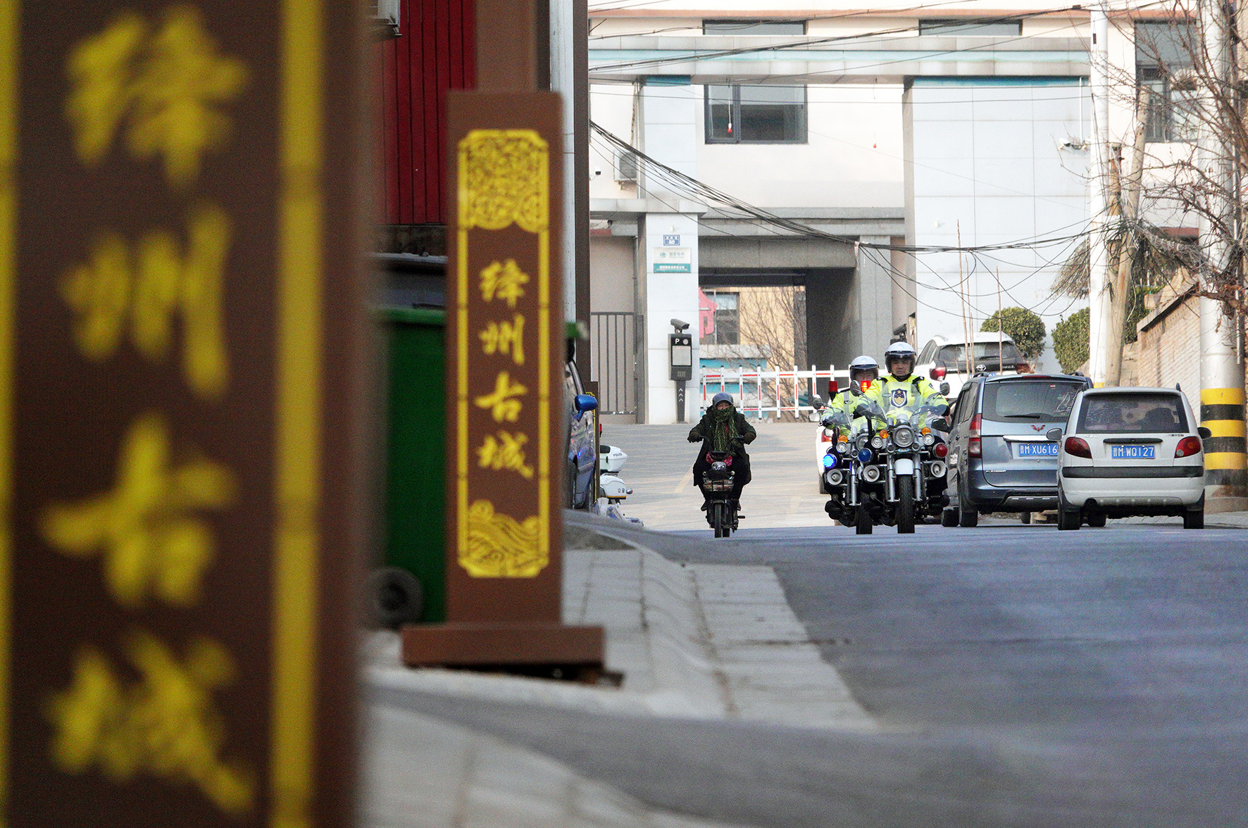 1月1日,山西省新絳縣公安交警大隊(duì)古城中隊(duì)民輔警在絳州古城巡邏。